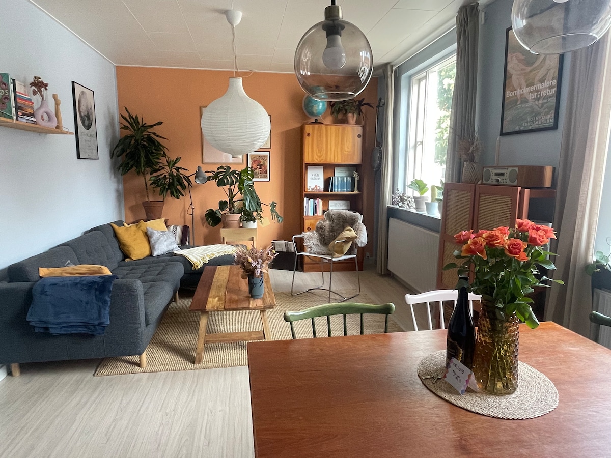 Dobro došli u Rainbow 1! 250 godina stara kuća od pola drveta. Renoviran je, ex- i enterijer uređen, što ga je učinilo da se pojavilo u nacionalnim medijima i eksplodiralo na društvenim mrežama. U starom gradu Rønne okruženom hollyhocks, šarenim kućama u nizu, doživećete prostrane sobe i dizajnerski namještaj. Pravimo vrlinu od korišćenja predmeta sa istorijom, a vi ćete pronaći stvari iz francuskih dvoraca i modernog danskog dizajna.