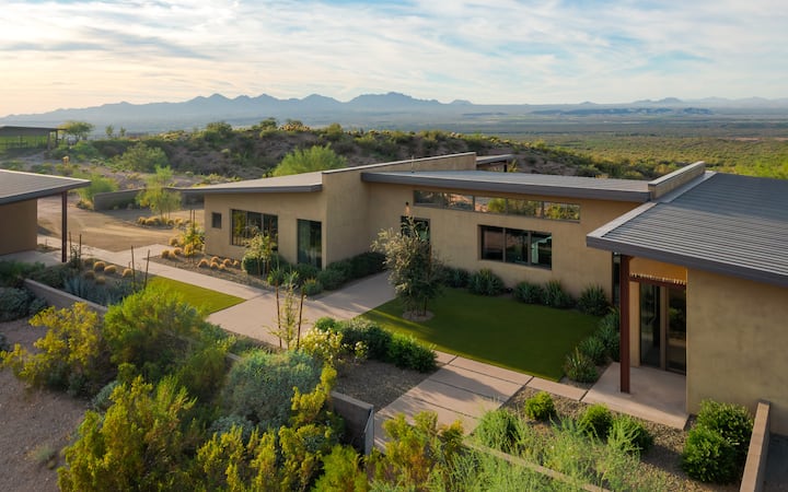 Otkrijte Paradise Canyon Estate 2, luksuzno utočište smješteno na 45 hektara netaknute nacionalne šume Tonto. Dizajniran od strane priznate arhitekte Keti Hejs i inspirisan bezvremenskim dizajnom Frenka Lojda Rajta, ovo ograđeno imanje pruža neusporediv odmor sa 5 zvjezdica. Smješteno na mirnom mjestu, a samo 10 minuta udaljeno od kazina i golf terena We-Ko-Pa, kao i obližnjih restorana i atrakcija, imanje nudi najbolju kombinaciju privatnosti i praktičnosti.