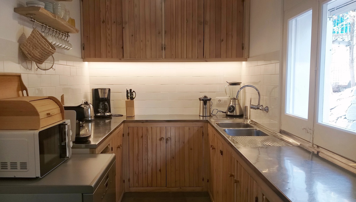 Letnji stan na plaži, sa nenadmašnim pogledom i lokacijom, veoma svetao i nedavno restauriran. Ima privatno parking mesto ispred kuće, 1 kupatilo sa kadom bez WC šolje i WC šoljom i tuš kabinom, 2 spavaće sobe sa bračnim krevetom, kuhinju, dnevnu sobu i terasu sa pogledom . Plaža je odmah ispod stana i vrlo je blizu parka prirode Cap de Creus, gde možete uživati u najboljim uvalama Kosta Brave.