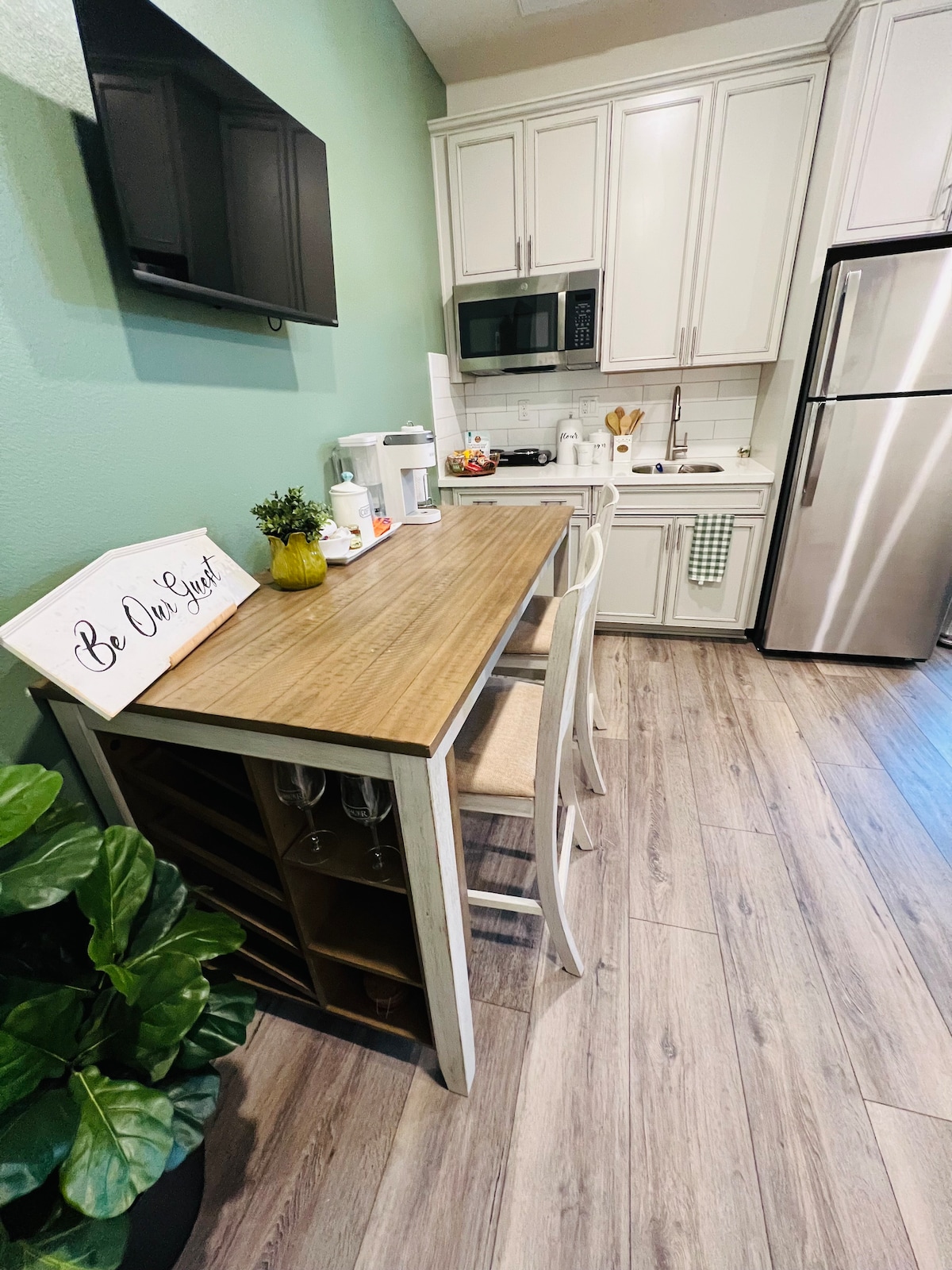 Upoznajte „PREKRASAN” studio apartman sa glavnom spavaćom sobom – privatni opuštajući apartman! Ulaz kroz staklena vrata u privatno dvorište + ključ za zaključavanje. Bračni krevet (širok 180–220 cm) + futon. Bar čajna kuhinja (mikrotalasna pećnica, frižider, aparat za kafu, toster, električni čajnik itd.). Besplatan Wi-Fi, pametni TV sa aplikacijama Hulu i Netflix. Dugoročno je moguće.
