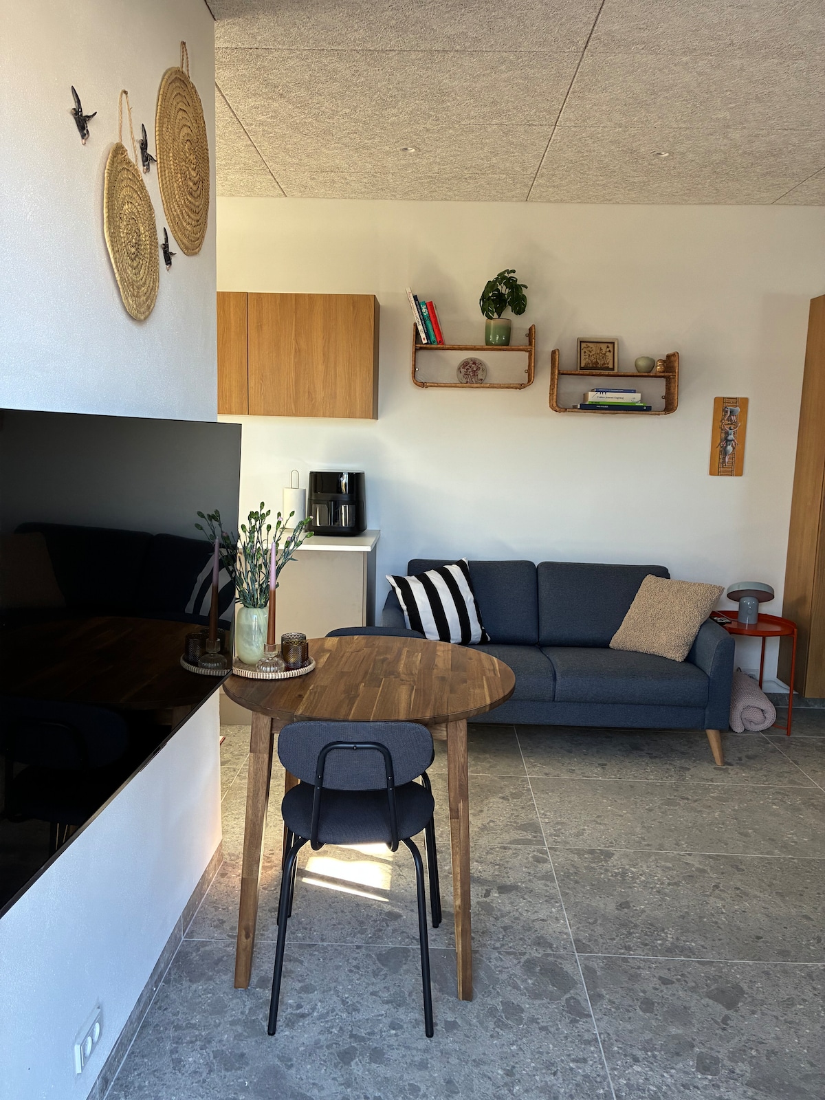 Moderan stan sa odličnim pogledom na more i 2 velika balkona. Pristup djelimično zajedničkoj bašti s namještajem, visećom ležaljkom i mrežom za korpe. 1 minut hoda do mora i luke gdje možete da plivate. Kupovina namirnica, 3 restorana i bazen 10 minuta hoda od kuće. 15 minuta vožnje do Roskildea i 40 minuta do Kopenhagena. 2 sprata. Za 5 osoba Imam ocjenu SUPER DOMAĆINA u svom prethodnom stanu (se slika) i daćemo vam savjete za razgledanje i restorane za područje i Kopenhagen.