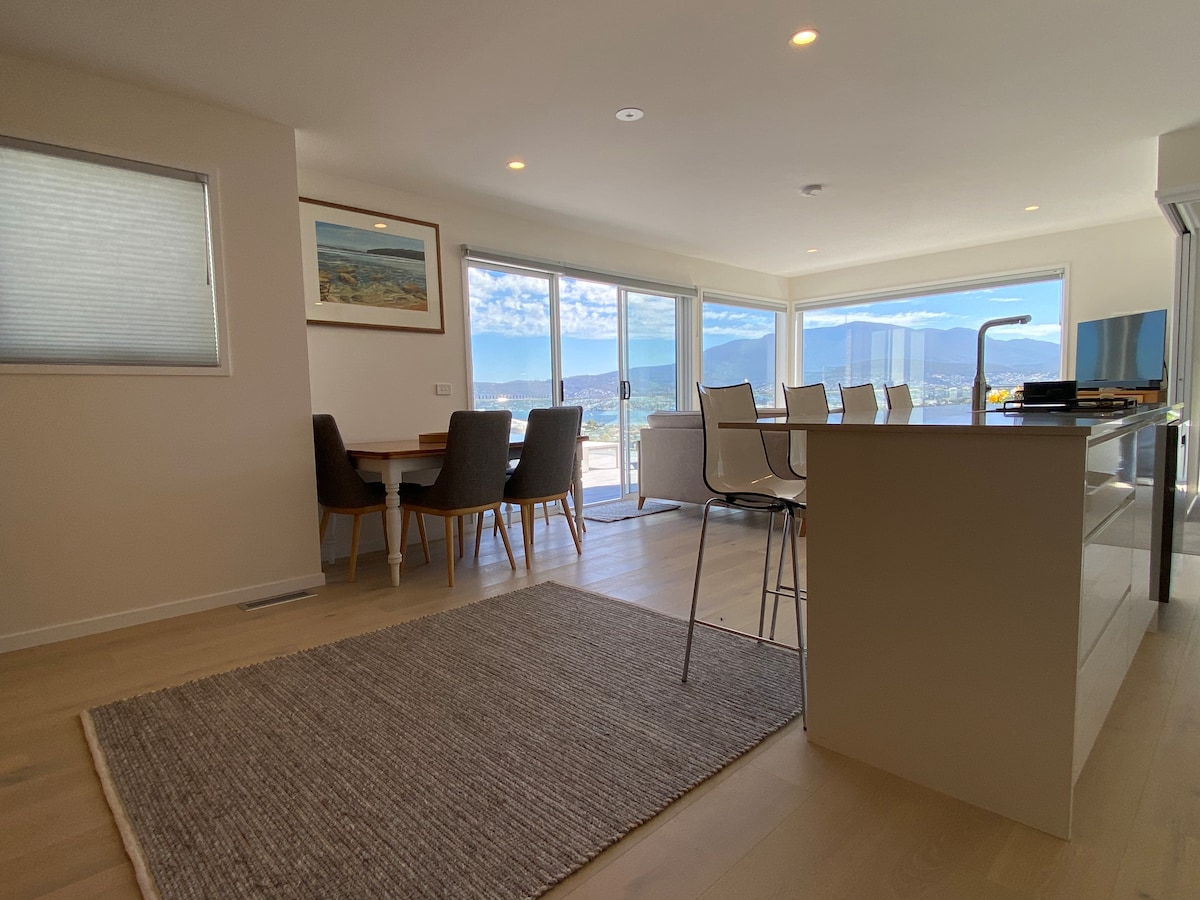 Pogled na studio je mesto gde možete da se opustite i provedete neko vreme uživajući u očaravajućem pogledu na Hobart, kunanji/planinu Velington i reku Dervent. Uživat ćete u privatnom pristupu ovom modernom zasebnom garsonjeri i terasi. Uživajte u luksuznom kamenom kupatilu nakon cjelodnevnog putovanja i uživajte u gradskim svetlima. Smešten na istočnoj obali Hobarta, studio je udaljen 10 minuta vožnje do grada i Salamanke, 20 minuta do vinarije MONA ili Ričmond i Koal Veli i 15 minuta od aerodroma Hobart.