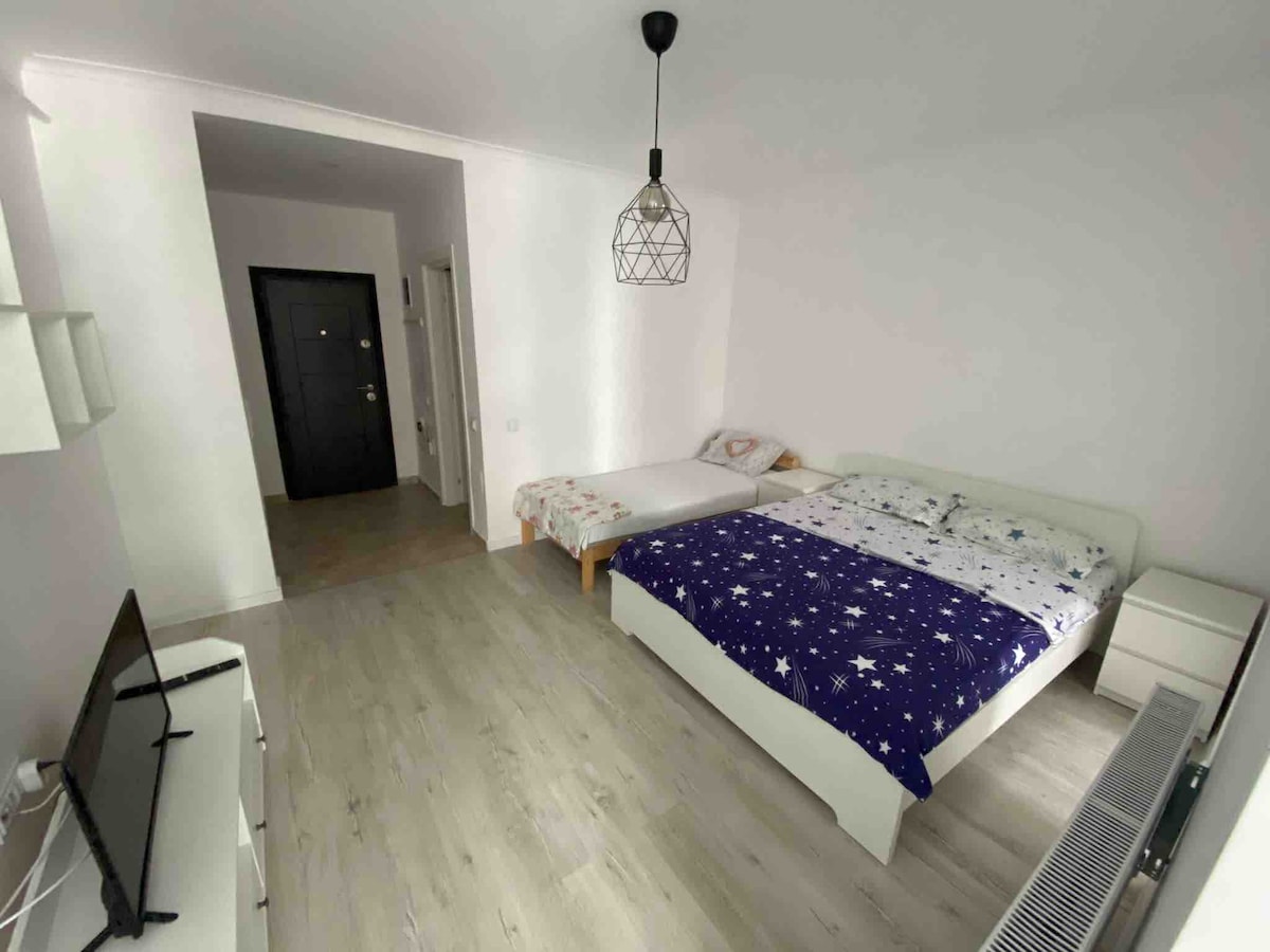 Potpuno nova garsonjera, čista, sa modernim dizajnom i sjajnim pogledom na grad, koja se nalazi u novom stambenom kompleksu. Garsonjera se nalazi na samo 4 minuta hoda od stanice metroa 1. decembar 1918, pored zgrade imamo supermarket Lidl, Auditorium Pallady i lak pristup autoputu. Takođe, podzemni besplatan parking je na raspolaganju tokom vašeg boravka. U udobnom studiju imamo pametni TV+Netflix, besplatan Wi-Fi i druge predmete koji su neophodni da bi vaš boravak učinili savršenim.