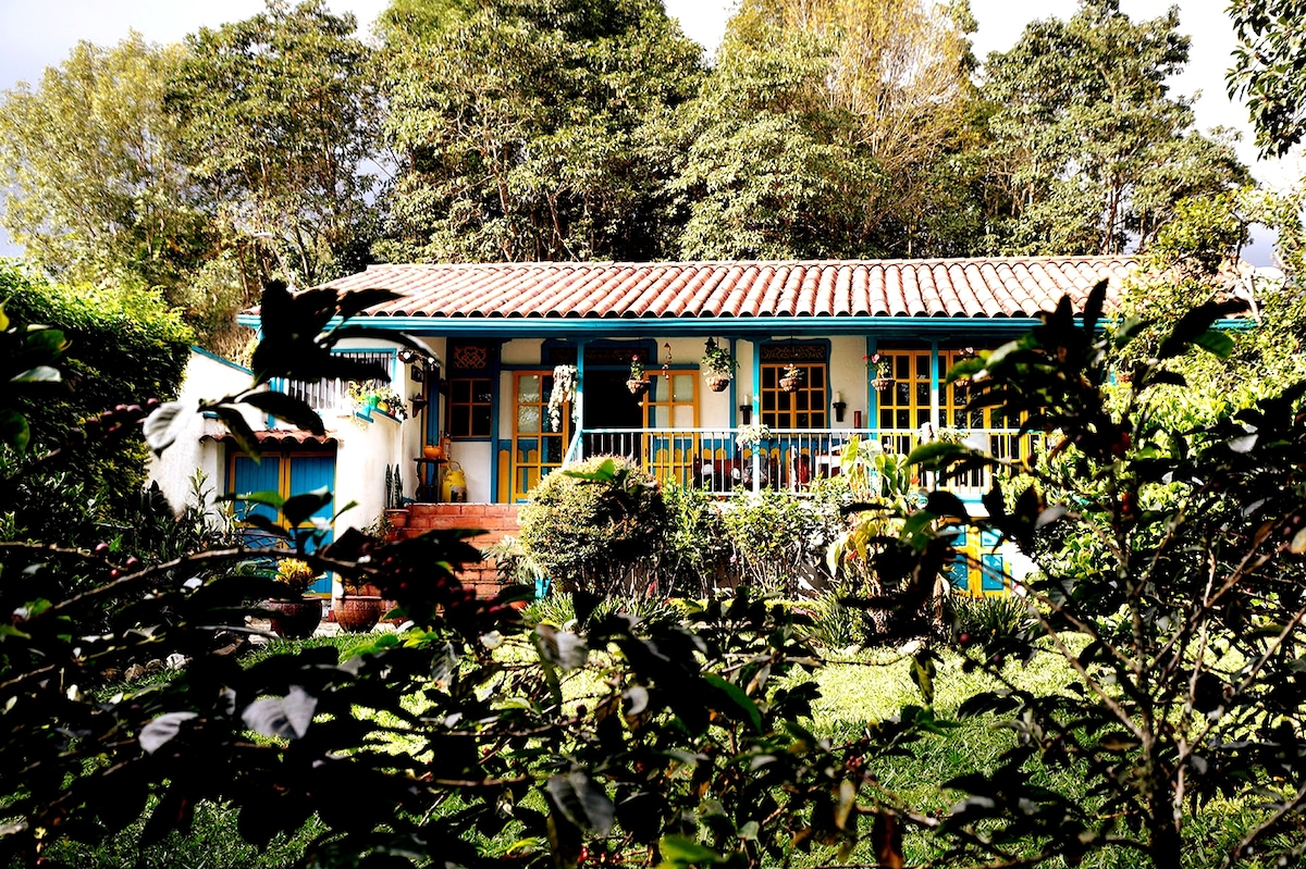 Pobjegnite u kolumbijski trokut kafe. # Živite ovdje u ovoj šarmantnoj tradicionalnoj kući sa svojim bijelim zidovima i šarenim drvenim krovom. Uživajte u tipičnoj seoskoj kući u regionu, u gradu. Smeštaj je idealan za parove, porodice ili grupe prijatelja.