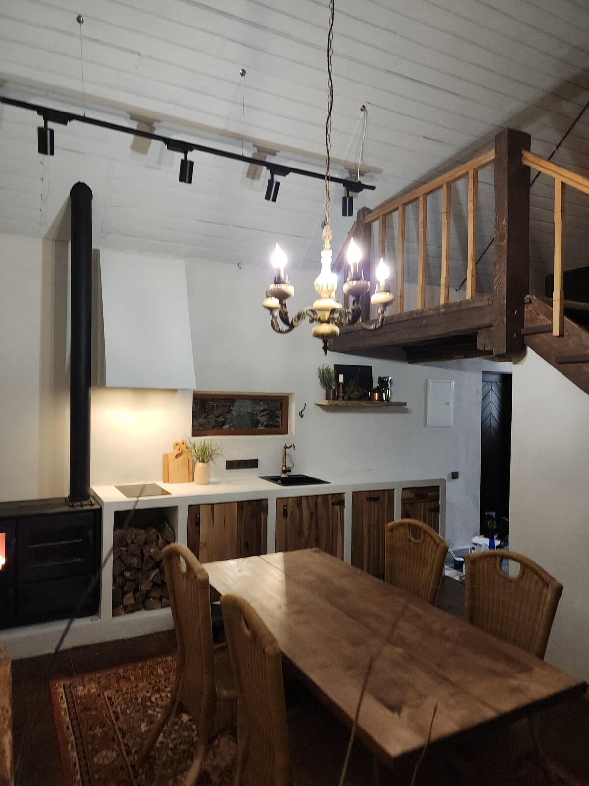 Udobno drveno imanje sa sopstvenom teritorijom u selu V. Kuća za odmor sa porodicom ili malom grupom prijatelja (4-6 osoba). Kuća ima 2 sprata: na 2. spratu se nalazi potkrovlje sa 1 spavaćom sobom sa bračnim krevetom i prolaznom sobom sa kaučem na razvlačenje i radnim stolom, na 1. spratu se nalazi spavaća soba sa 2 kreveta za jednu osobu, dnevna soba, opremljena svim potrebnim kuhinjom, kupatilom (tuš kabinom i WC-om) i rernom. Na teritoriji: natkriveni paviljon sa rernom za roštilj, parking za 3 parking mesta i jezerce. Tu je Wi-Fi.