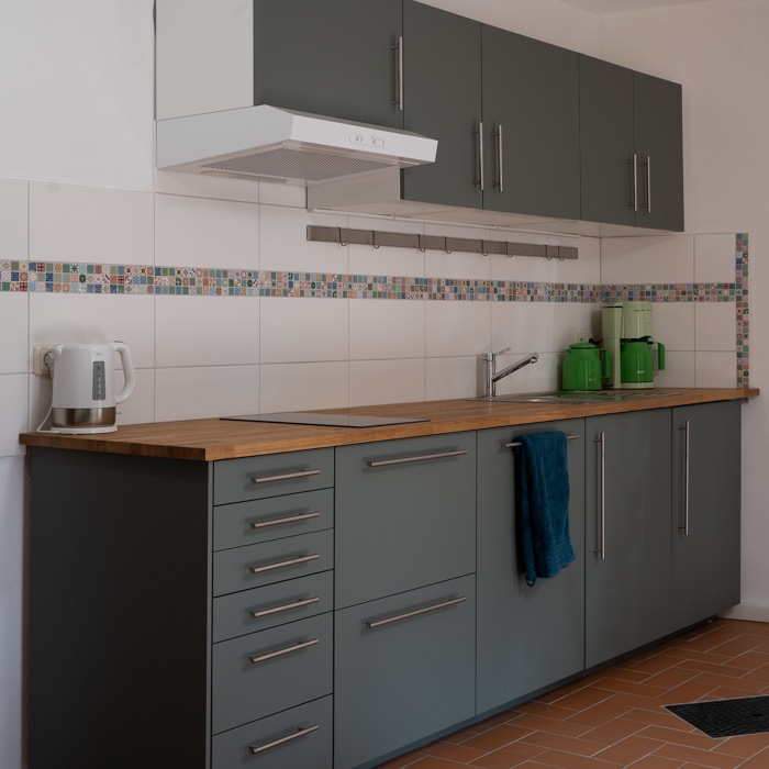 Stan se nalazi u renoviranom odmaralištu iz 1900. godine u Berlinu. Do kuće se može doći preko prednje kuće u Mittenwalderstrasse 8 i nalazi se u mirnom dvorištu. Garsonjera površine cca. 17 m2 se nalazi u prizemlju. Kuhinja je opremljena za kratak boravak i ima odgovarajuću osnovnu opremu. Kupatilo je odvojeno i opremljeno tušem (80x80 cm).