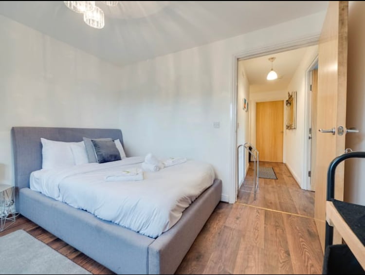 Potpuno novi luksuzni apartman sa kaučem na razvlačenje sa vrhunskim nameštajem od hrasta. Svetla je, prostrana i udobna Nalazi se nasuprot starog Trafforda u Emiratima i samo 5 minuta hoda do legendarnog stadiona Mančester Junajted, nudi odličnu lokaciju. Štaviše, kratka šetnja od 5 minuta će vas odvesti do tramvajske stanice, što će vam omogućiti direktan pristup užurbanom centru grada. Doživite savršen spoj istorije, sporta i zabave tokom boravka