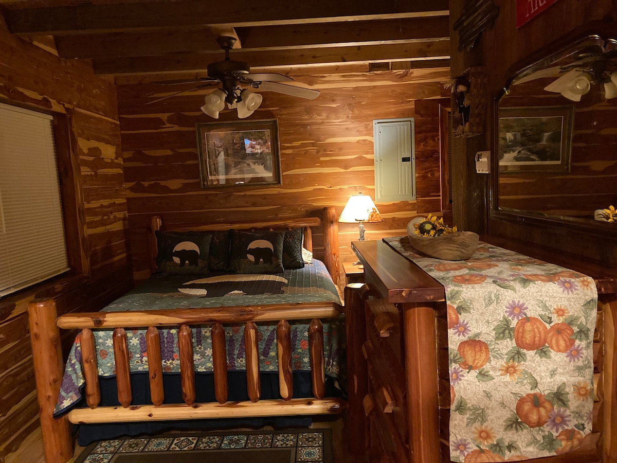 * Nedavno smo dodali dodatni ventilator u potkrovlje koji će vam pomoći oko ljetnjih vrućina i ognjište sa sjedećom garniturom pozadi.* Fiber Wi-Fi, dobro opremljena kuhinja i roštilj na otvorenom! Nevjerovatna lokacija, odmah iza kampa na ulazu u državni park Petite Jean! Ovaj jedinstveni smještaj ima sopstveni stil. Brvnara s kosim krovom je pažljivo dizajnirana da maksimalno iskoristi prostor bez žrtvovanja sadržaja.
