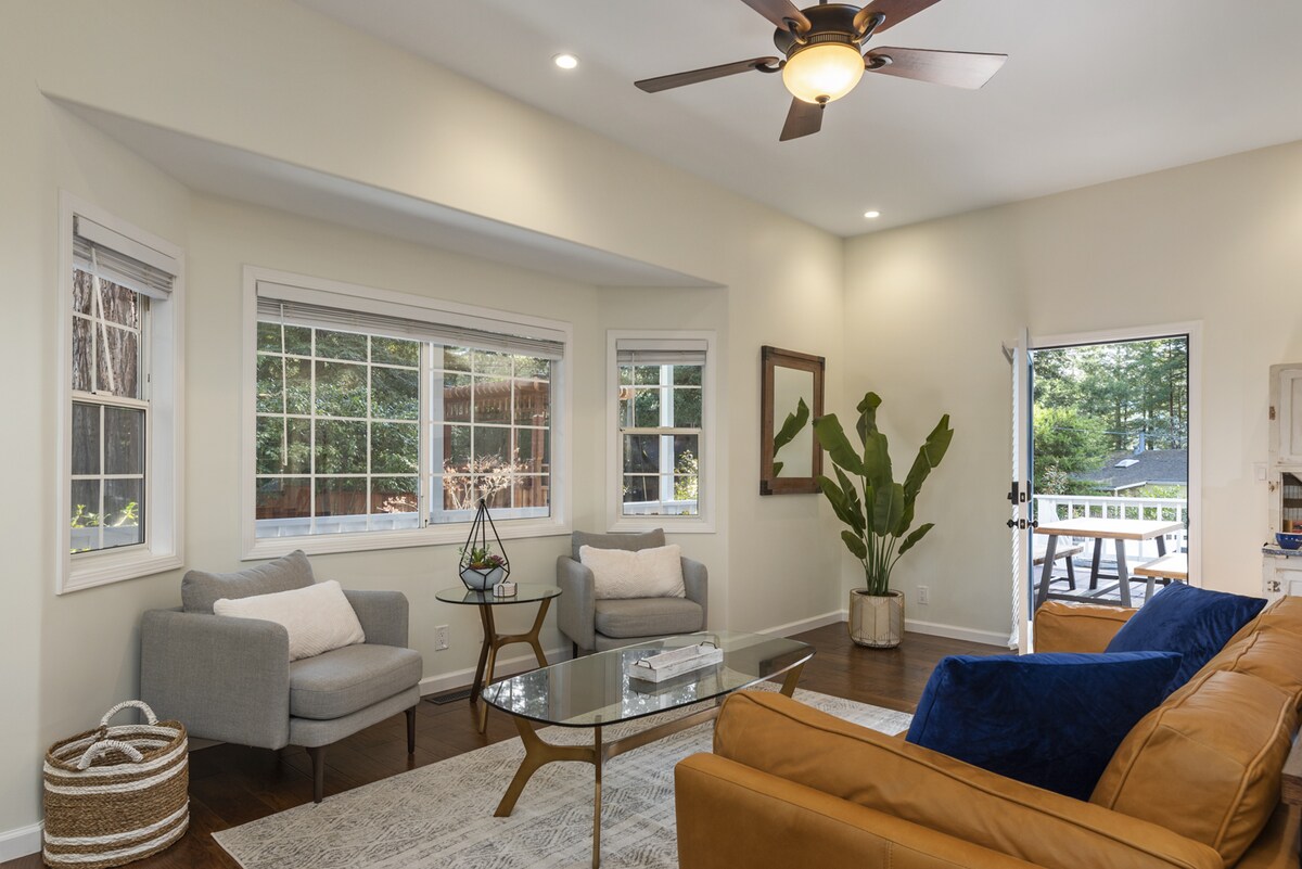 NOVO! Dostupno je punjenje električnih vozila! Probudite se do svježih jutara smeštenih u šumi sekvoja sa pristupom privatnoj hidromasažnoj kadi. Plutajte ruskom rekom i uživajte u nagrađivanim vinarijama u okrugu Sonoma. Po povratku, večerajte na otvorenom na terasi za sunčanje sa roštiljem, kaminom i terasom sa suncobranom. Ova novouređena, moderna kuća na farmi će vas oduševiti luksuznim sadržajima, uključujući mermerni kamin, igraonicu sa bilijarom, stoni tenis i retro konzolu za video igre.