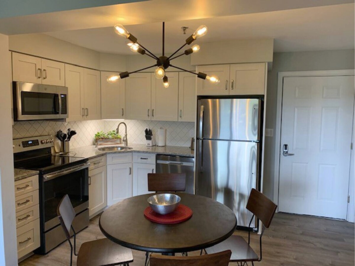 Ski On-Ski Off cozy mountain condo with Real Wood Fire Place and King Size Bed in Sunrise Village on Killington Mountain. Novosti uključuju sav novi nameštaj u spavaćoj sobi i spavaćoj sobi za goste, sve nove uređaje od nerđajućeg čelika u gurmanskoj kuhinji, ukusno uređeni dnevni boravak sa novom sofom za spavanje veličine 150-179 cm i stolicama iz istog kompleta. Jednostavno prošetajte do kraja parkinga do staze za uključivanje/isključivanje skijališta. Vlasnik sam susjedne jedinice - više informacija u nastavku.
