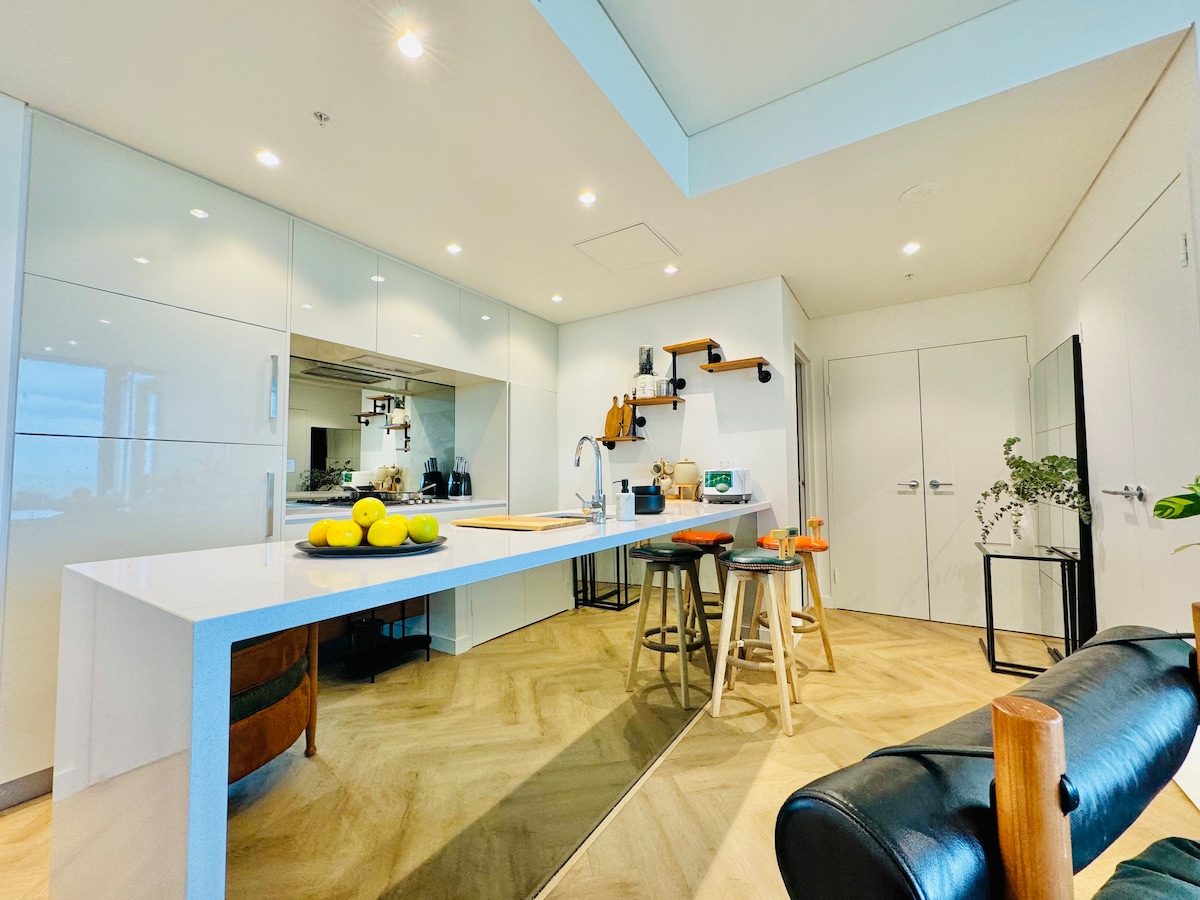 Modern 1BR , just 7 mins to Accor Stadium & Qudos Bank Arena, 20 mins to Sydney CBD. Nalazi se iznad Coles, Kmart, TK Maxx, kafića i autobuskih stanica do Rodosa i grada. Sadrži bazen, spa centar, saunu, teretanu i obezbjeđenje koje radi non-stop. Može da primi do 3 osobe (ili 2 odrasle osobe + 2 djeteta). Brzi Wi-Fi, kompletna kuhinja, privatni balkon. Zabranjene su zabave, kućni ljubimci i pušenje. Savršeno za mirne goste koji prisustvuju događajima ili istražuju Sidnej.
