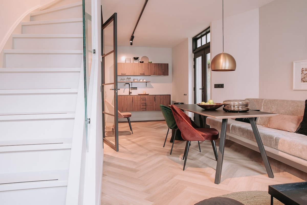 Dobro došli u naš butik stan sa balkonom na drugom spratu naše prelepe zgrade, odmah pored centralne stanice 's-Hertogenbosch-a. Javni prevoz vam je na pragu i usred našeg šarmantnog centra grada. Prostrana dnevna soba sa spoljašnjim prostorom, 1 velika spavaća soba, predivno kupatilo sa kišnim tušem i zasebnim samostojećim kupatilom. Besplatan Wi-Fi, pametni televizor, čajna kuhinja i sadržaji za pranje veša. Mogućnost iznajmljivanja radnog prostora na donjem spratu.