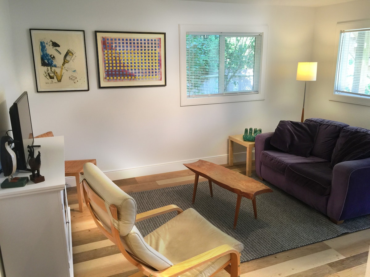 Kick back and relax in this calm, stylish space. Treat yourself to luxury. Espresso machine, fine linens, heated bathroom floor, bidet, premium-local shower products and conveniently stocked kitchenette and breakfast items. **Ceiling height is 6’ ** (6’2” in the kitchen) This is a self contained suite with keypad entry. There is a combo washer & dryer unit in the suite. We also rent our car on Turo! Come enjoy a beauty peaceful vibe, tucked into nature, convenient & close to the action!