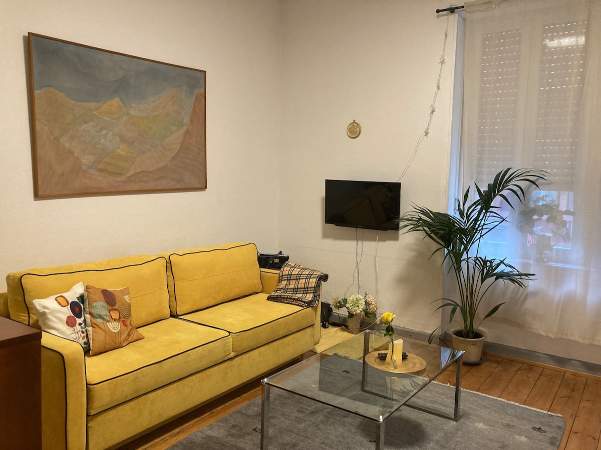 Naš moderan i udobno namješten stan (oko 50 m2) nalazi se u samom centru glavnog grada Saarbrücken. Stan se nalazi u uzdignutom prizemlju stambene zgrade. Stan je mala oaza u gradu sa balkonom sa pogledom na zeleno dvorište. Prelijepa namještena opremljena kuhinja s modernim aparatima, frižiderom, uključujući zamrzivač i Nespresso aparat. Udoban bračni krevet (na 2x2m) i, naravno, brzi internet (Wi-Fi).