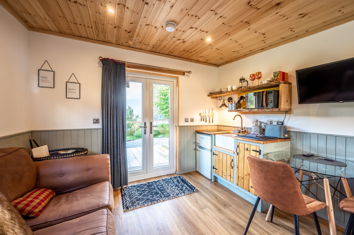 Brvnare Sasaig su namijenjene za 1 ili 2 osobe, brvnare su udobne i udobne sa duplim prostorom za spavanje, kupatilom sa tuš-kabinom i malom kuhinjom koja ima sudoperu,frižider, toster,čajnik, fritezu, roštilj i mikrotalasnu pećnicu (bez prstena za kuvanje) savršenu bazu za istraživanje. Lokalno smo na pješačkoj udaljenosti od destilerije Toravig, imamo privatni pristup plaži Knock i udaljeni smo 10 minuta vožnje do trajektne linije Armadale. Druga po veličini opština na ostrvu je udaljena 15 minuta vožnje od nas .