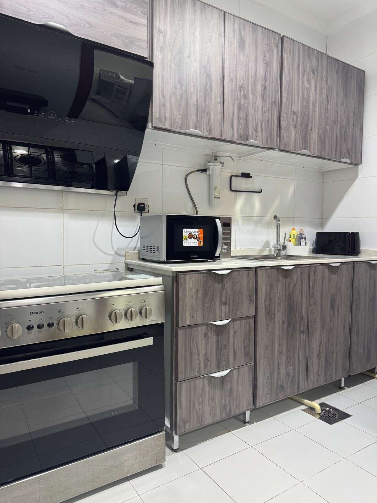 ✨ Odlična lokacija sa sjajnim sadržajima ✨ • Samo dva minuta od plaže, nasuprot tornja Al Raja i blizu pijace Al Mubarakiya. • Jakuzi u dnevnoj sobi. • Potpuno opremljen kutak za kafu. • Veoma udobni kreveti. • Tihi prostor savršen za porodice. • Prodavnica namirnica u zgradi. • Ženski salon i usluge pranja veša u blizini. • Privatni parking u podrumu. 🔸 Važna napomena: Samo za porodice – nije dozvoljeno za mlade muškarce.