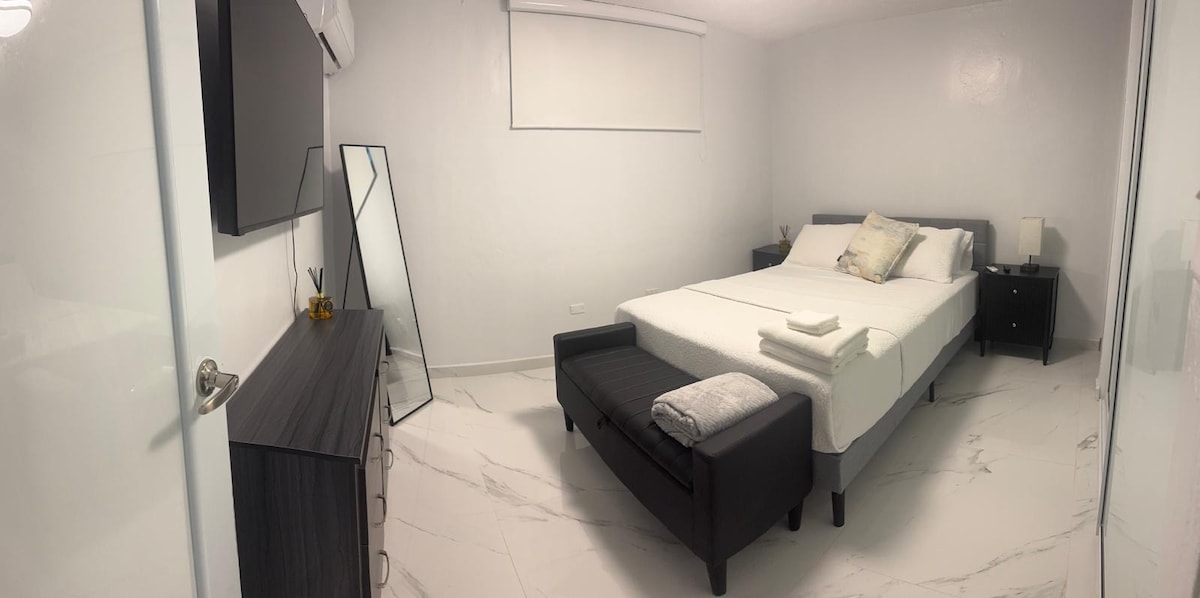 Disfruta de una estadía cómoda y elegante en este apartamento moderno y acogedor, ubicado cerca del centro de Ponce. El apartamento cuenta con una habitación abierta con cama queen, sala moderna con sofá cama, cocina y un baño moderno y funcional. Gracias a su ubicación céntrica, tendrás fácil acceso a restaurantes, comercios, atracciones culturales y todo lo que Ponce tiene para ofrecer. Perfecto para quienes desean descansar, trabajar remoto o explorar la ciudad sin complicaciones.