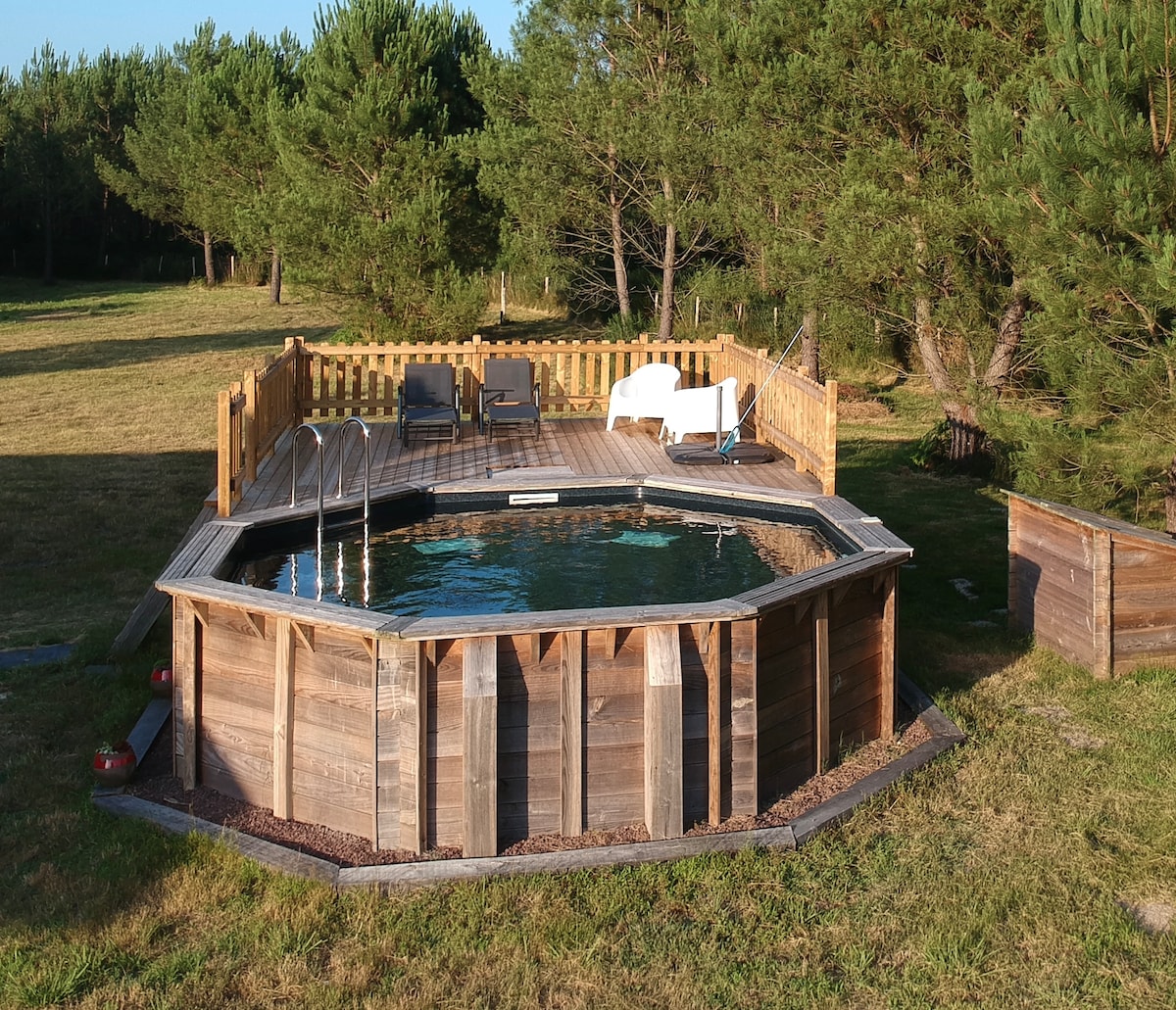 U DIVLJINU - šarmantna planinska kuća 🌲 Otkrijte naše drveno utočište, 2ha u šumi, u parku Landes de Gaskogne. 🍃 30 minuta od Bordoa 🍇 i Arkašona🌊, 15 minuta od Lac d 'Hostens🏞️. Savršeno mjesto za odmor u prirodi bez TV-a/interneta🚫💻. Živite usred prirode🌳, istražujte ili se opustite pod zvijezdama✨. Poziv za mir i avanturu🚣♂️. Rezervišite nezaboravno🌟!