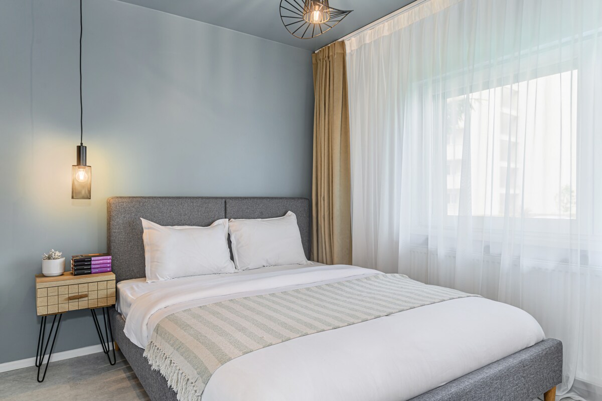 Ultramoderni potpuno opremljeni apartman sa privatnim parkingom i elektronskom bravom za prijavu/odjavu. Nalazi se u potpuno novom stambenom području – Cartier Coresi, u blizini tržnog centra Coresi, na 10 minuta od istorijskog centra. Ima spavaću sobu sa bračnim krevetom, dnevni boravak sa sofom na razvlačenje, potpuno opremljenu kuhinju, klima-uređaj, veliku terasu sa ležaljkom, mašinu za pranje veša/mašinu za pranje sudova, dva 4k televizora sa Netflix-om i HBO Go-om.