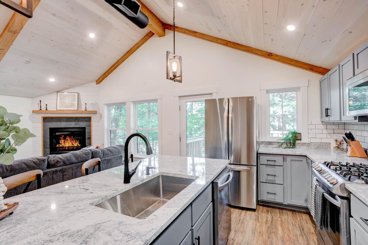 Kuća u planini iz snova sa pogledom na planinu Vašington i Bele planine! Ova kuća se može pohvaliti sa 4 spavaće sobe i 2 kupatila, a savršena je za velike grupe koje traže jednostavan pristup skijalištu Pleasant Mountain, Long Lejk, jezeru Sebago i rijeci Sako, kao i obližnjim stazama za brdski biciklizam, planinarenje i motorne sanke. Nakon dugog dana avanture, uživajte u kupanju u našoj hidromasažnoj kadi za 6 osoba, potpuno opremljenoj kuhinji, šporetu na drva i udobnoj dnevnoj sobi sa velikim TV ekranom!