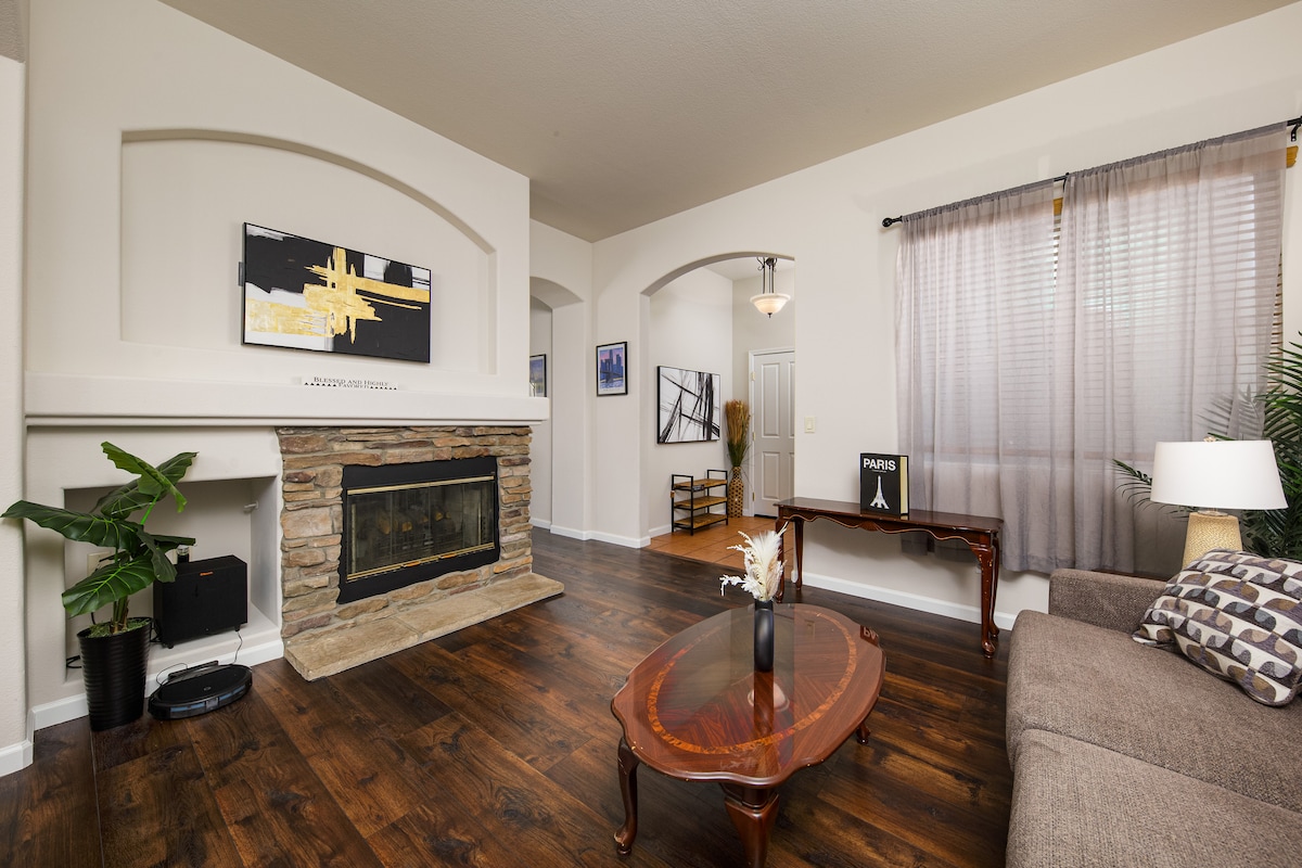 ✨ Relax in this remodeled 3-bed, 1-bath home on a spacious 7,000 sq ft lot. 🍳 Modern kitchen with quartz counters, full backsplash, a large island with bar seating, and premium appliances. 🛋️ Cozy living room with a 65” TV, plus ceiling fans and 58”, 55”, and 42” TVs in the bedrooms. Premium mattresses, fresh paint, and beautiful wood floors throughout. 🛁 Newly remodeled bath 🌳 Large yard in a peaceful neighborhood — perfect for families, work trips, or anyone seeking comfort and serenity.
