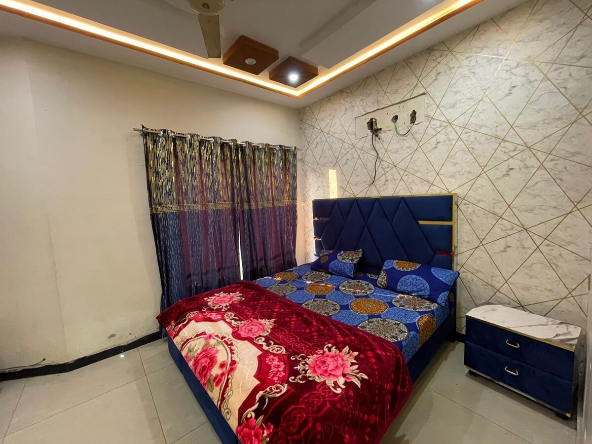 This inviting apartment exudes tranquility, creating a peaceful haven for families. Its warm ambiance embraces you upon entry, instantly fostering a sense of home. Thoughtfully designed, it radiates a family-friendly atmosphere, making it an ideal retreat for shared moments and lasting memories. Relax with the whole family at this peaceful place to stay. Additional services: A visit can be arranged on demand, 1) Gurdwara Rori Sahib Emanabad 2) Opera Cinema Citi Housing Gujranwala