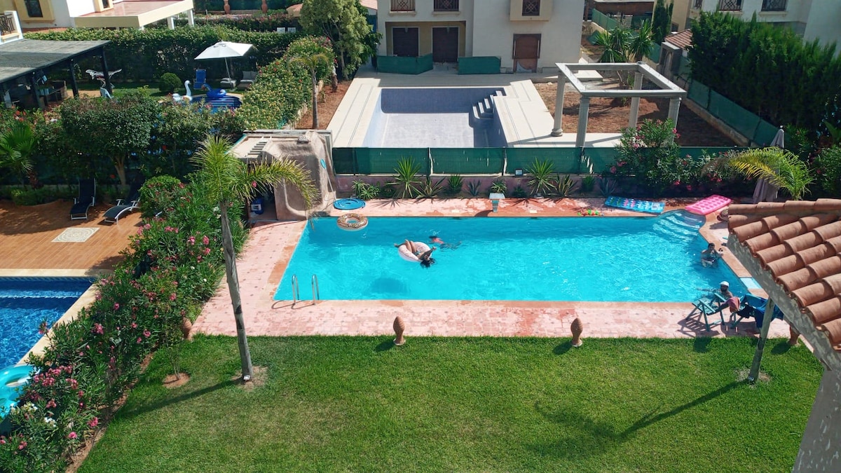 Savršeno za porodični odmor u Saidiji! Prekrasan prostrani stan u prizemlju, u ograđenoj i sigurnoj rezidenciji sa bazenom. Terasa s pogledom na veliku mirnu baštu, savršena za igru djece u miru. Potpuno opremljena kuhinja sa filterom za vodu za piće (7 nivoa), svijetla dnevna soba, dva velika ormarića za odlaganje. Pet minuta od plaže, marine i velikog područja Marjane automobilom. Udobnost, opuštanje i uspomene su zagarantovani!