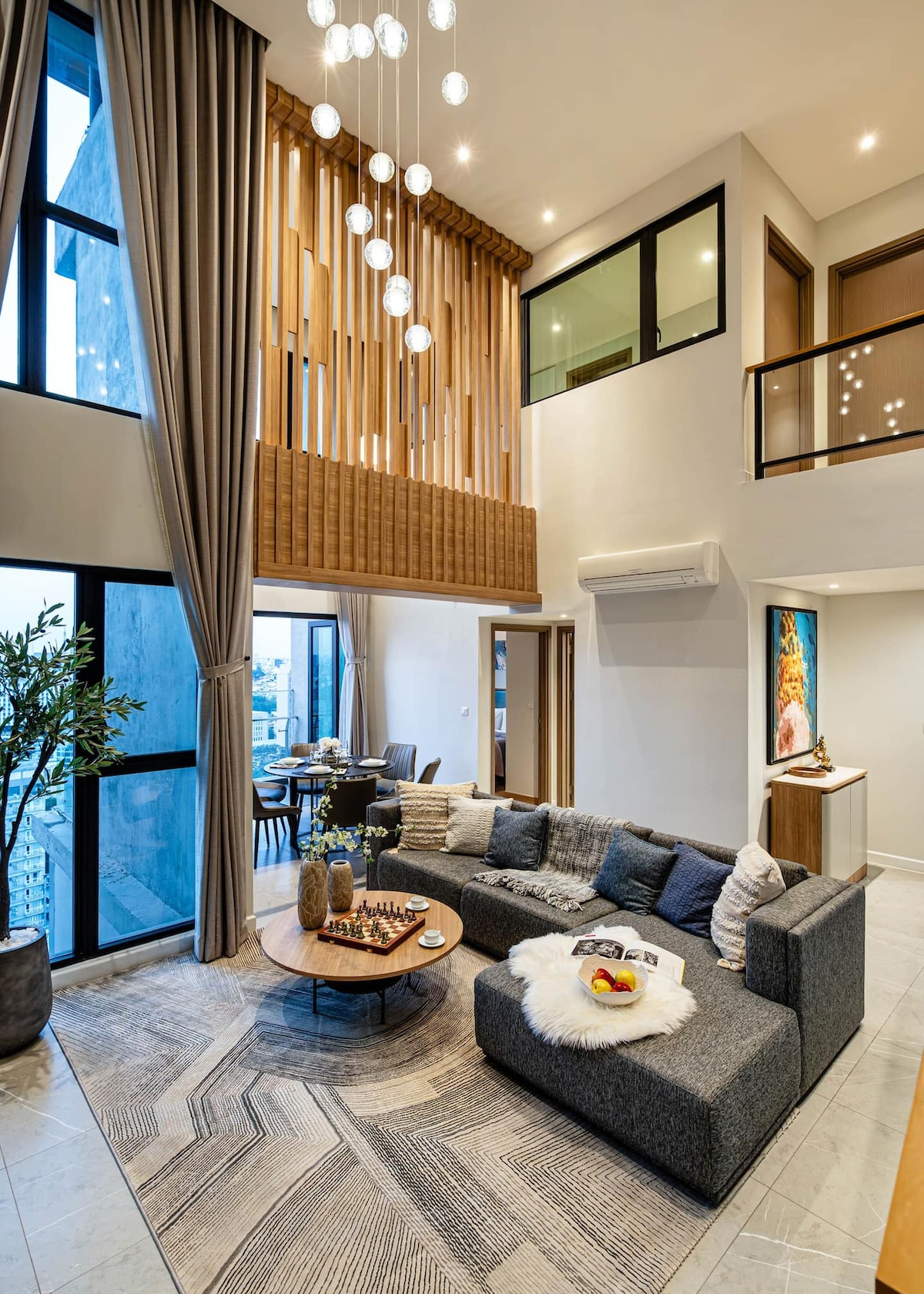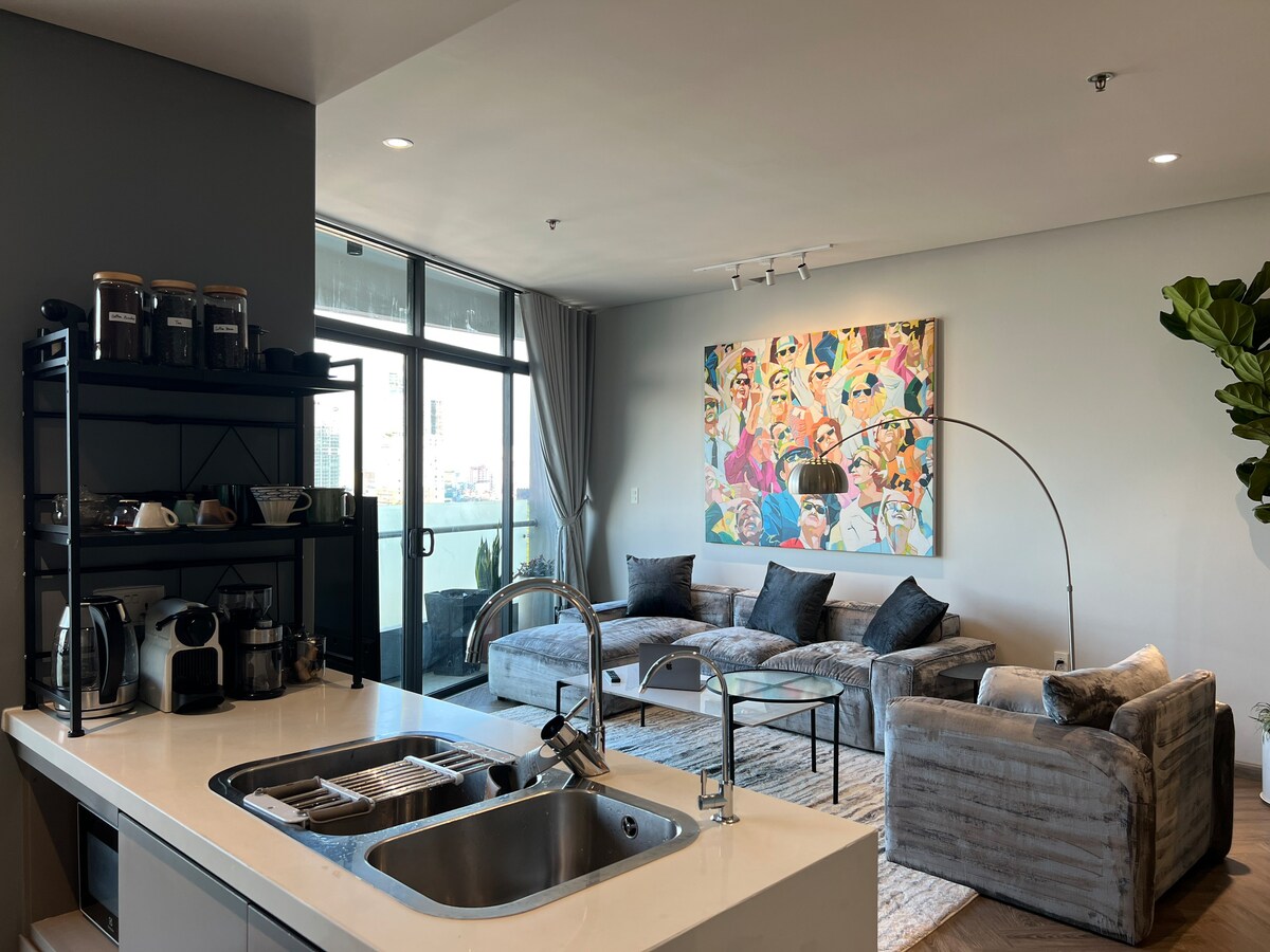 Stan je lijepo dizajniran u stilu Vabi Sabi koji se nalazi u zgradi D1Mension Residences, centru stana u okrugu 1, umjetničkom stilu, vrhunskim sadržajima odmarališta, posebnom bazenu na krovu_ spa bazen _ sauna, teretana_ izložbeni prostor, privatna kancelarija, baštenski ribnjak, pica od 4'u predvorju, prostor za roštilj u bašti, prostor za igru za djecu, prostrana čekaonica, svi prozori spavaće sobe i balkoni su prozračni, jedinstveni, luksuzni, otmjeni stan