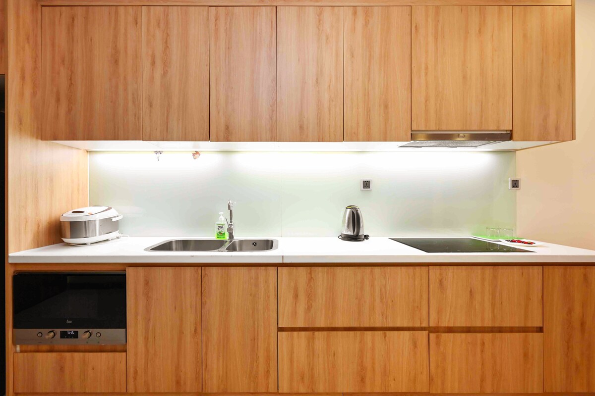 Otkrijte luksuzno privatno utočište u srcu grada. Samo 3 minuta od Rach Chiec MRT, ovaj pametni dom od 45m² nudi privatnost, udobnost i stil. Uživajte u vrhunskim sadržajima: osvjetljenje pod kontrolom aplikacije, 4K televizori od 85” i 55” s Netflix-om i Apple TV-om, impresivnim Apple HomePod zvukom, prilagodljivim osvjetljenjem raspoloženja i hidromasažnom kadom u spa stilu od 2 metra. Savršeno za parove, poslovne putnike i male porodice.
