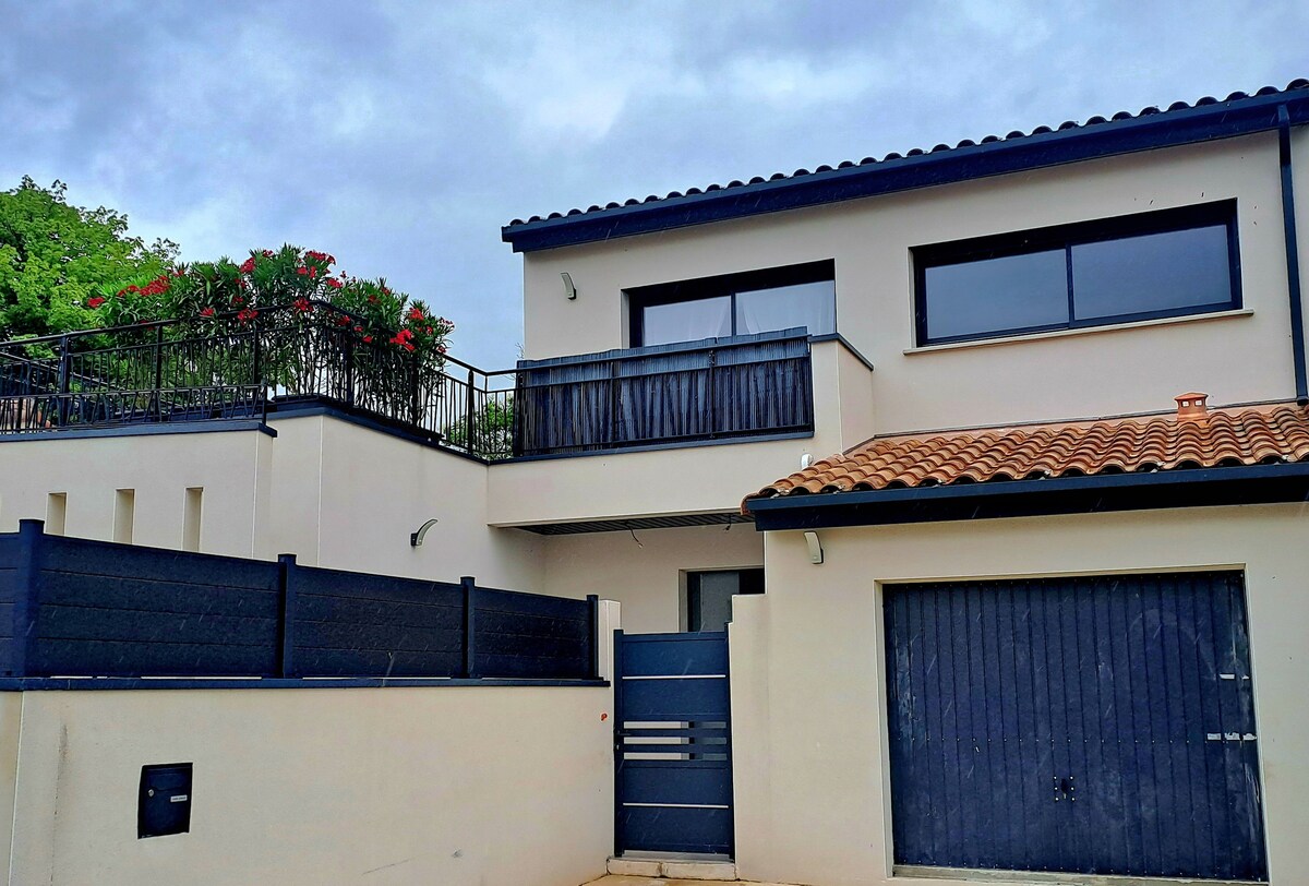 Za odmor ili zaustavljanje na putu za Španiju F1, jedan sprat od 25 m2, klimatizovan, pored naše vile sa nezavisnim ulazom, kao i sa intimnom PRIVATNOM BAŠTOM. Vaš automobil će biti parkiran na našem prilazu (električna kapija). Spavaća soba sa bračnim krevetom 140/200 odvojena staklenim krovom, Potpuno opremljena kuhinja (mikrotalasna rerna, indukciona ploča itd.) tV lounge sa 140/190 kaučem na razvlačenje WC u kupatilu (tuš-kabini) Imate baštu, sto, ležaljke za sunčanje, električnu planču.