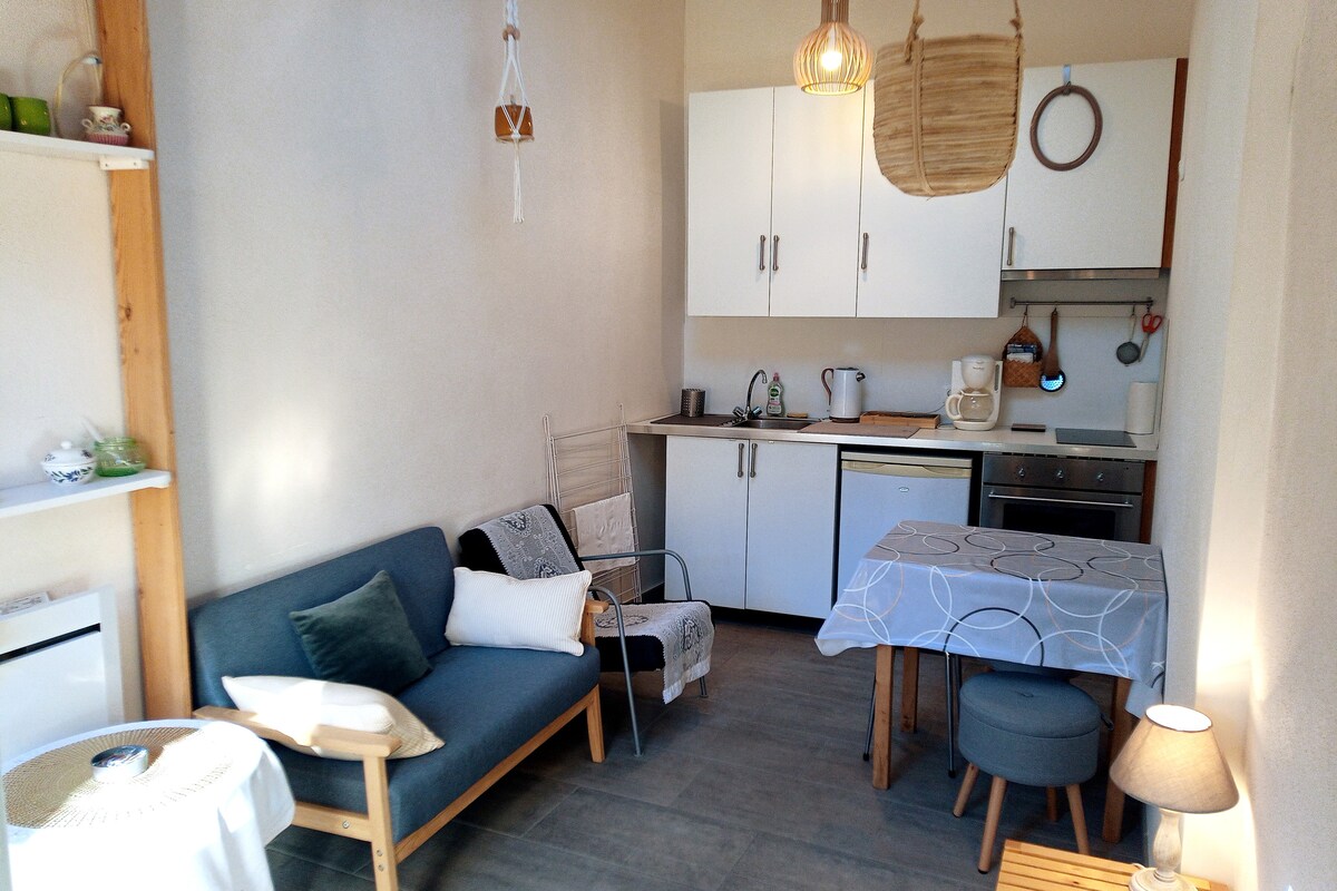 U lijepom selu Sen Andre de Sangoni iznajmljujem stan od 37 m2 Prizemlje, blizu svih prodavnica koje se mogu obići peške. Stan ima parking mjesto ili besplatan parking udaljen 250 m. – Spavaća soba sa bračnim krevetom 160/200 (Posteljina je obezbijeđena) klima-uređaj. – Sopstveno kupatilo (peškiri) (2 peškira za kupanje) Zaseban toalet . - Kauč na razvlačenje u dnevnoj sobi za 1 odraslu osobu ili 2 dece. - Dobro opremljena kuhinja (Senseo aparat za kafu) Domaine Granoupiac 5 m