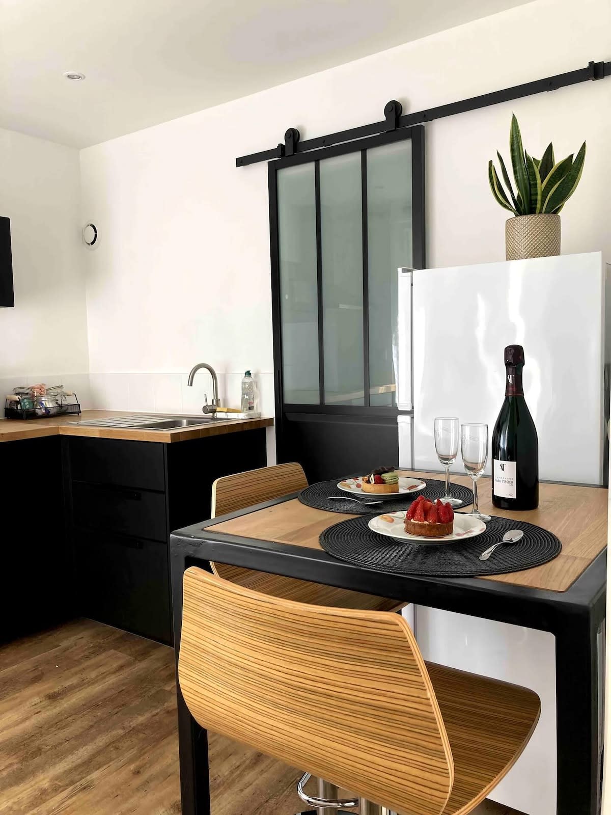 Otkrijte naše prelijepo potkrovlje u industrijskom stilu koje kombinuje autentičnost i modernost. Izloženi zid od cigle, čelični mezanin, daje urbanu i toplu atmosferu. Drvo donosi starinsku stranu. Prostor je otvoren, svijetao i funkcionalan sa opremljenom kuhinjom, udobnom malom dnevnom sobom i trpezarijskim stolom. Dekorativni detalji, kao što je retro luster, daju karakter i šarm. Prelijepo kupatilo upotpunjava ovaj atipični objekat za praktičan boravak.