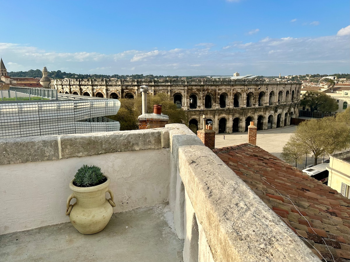 Klimatizovani stan površine 120 m2 u srcu grada Nim, na 5 minuta hoda od stanice SNCF. Blizina svih sadržaja: restorana, prodavnica i prevoza. Imaćete zadovoljstvo da se divite bikovima sa krovne terase stana.