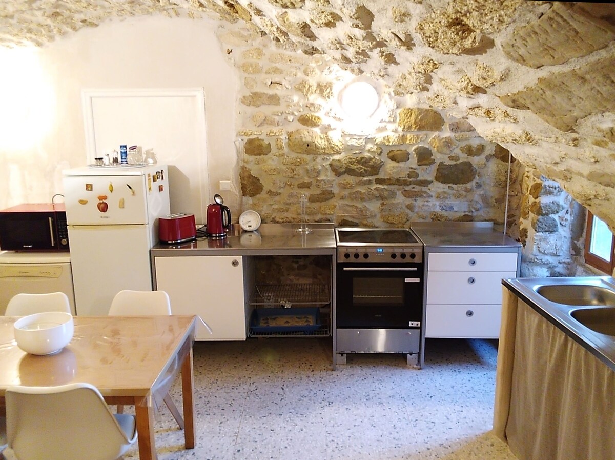 Smješten u trouglu Uzčs Nîmes Anduze, selo sa svim sadržajima i prodavnicama, iznajmljuje nezavisni stan 50 m2 u kući. 1 spavaća soba (krevet 160x200), tuš kabina, WC, dnevni boravak sa sofom i TV-om, veranda, pristup bazenu, opremljena kuhinja. Mogućnost još dvije osobe na kauču u glavnoj sobi. dostupan je krevetac.