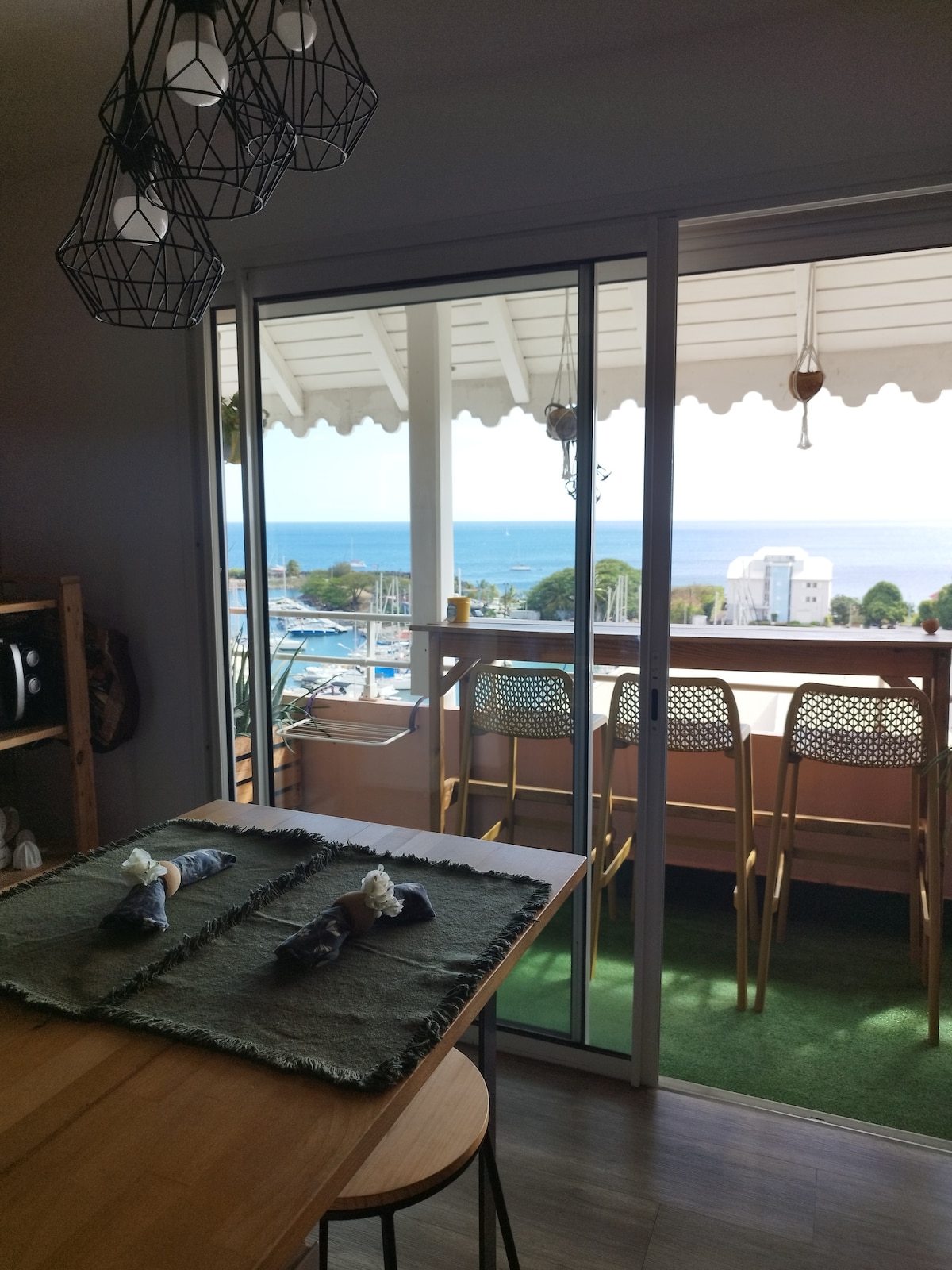 Vivez au rythme de la mer dans ce logement à la décoration raffinée. Profitez d'une vue époustouflante sans aucun vis-à-vis depuis le salon, la terrasse ou le coin jardin de ce T3 neuf. L'archipel des Saintes, l'une des plus belle vue de la Guadeloupe s'offre à vous de façon majestueuse. Au petit déjeuner, admirez le vol libre des frégates. En novembre 2026 vue direct sur la route du rhum et ses superbes bateaux. Une plancha est disponible pour vos grillades en extérieur. La nature vous attend.
