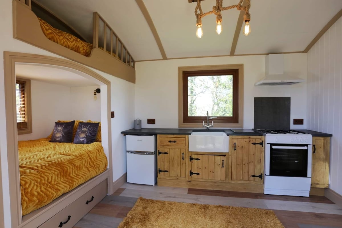 Naša prilagođena pastirska koliba Ešvud nalazi se na vrhunskoj poziciji na našem sajtu za bekstvo iz Hedlenda sa panoramskim pogledom na more. Probudite se prijatno i prijatno u bilo koje doba godine uz podno grejanje i plinski gorionik. Vaši privatni sadržaji u apartmanu osiguravaju vam sve što vam je potrebno za uživanje u luksuznom glampingu. Veličanstvene peščane plaže i dramatična obala Pembrokešira nalaze se na vašem pragu. Dovršite dan pod zvezdanim svetlom dok sedite i gledate Milkivej iz sopstvene privatne hidromasažne kade.
