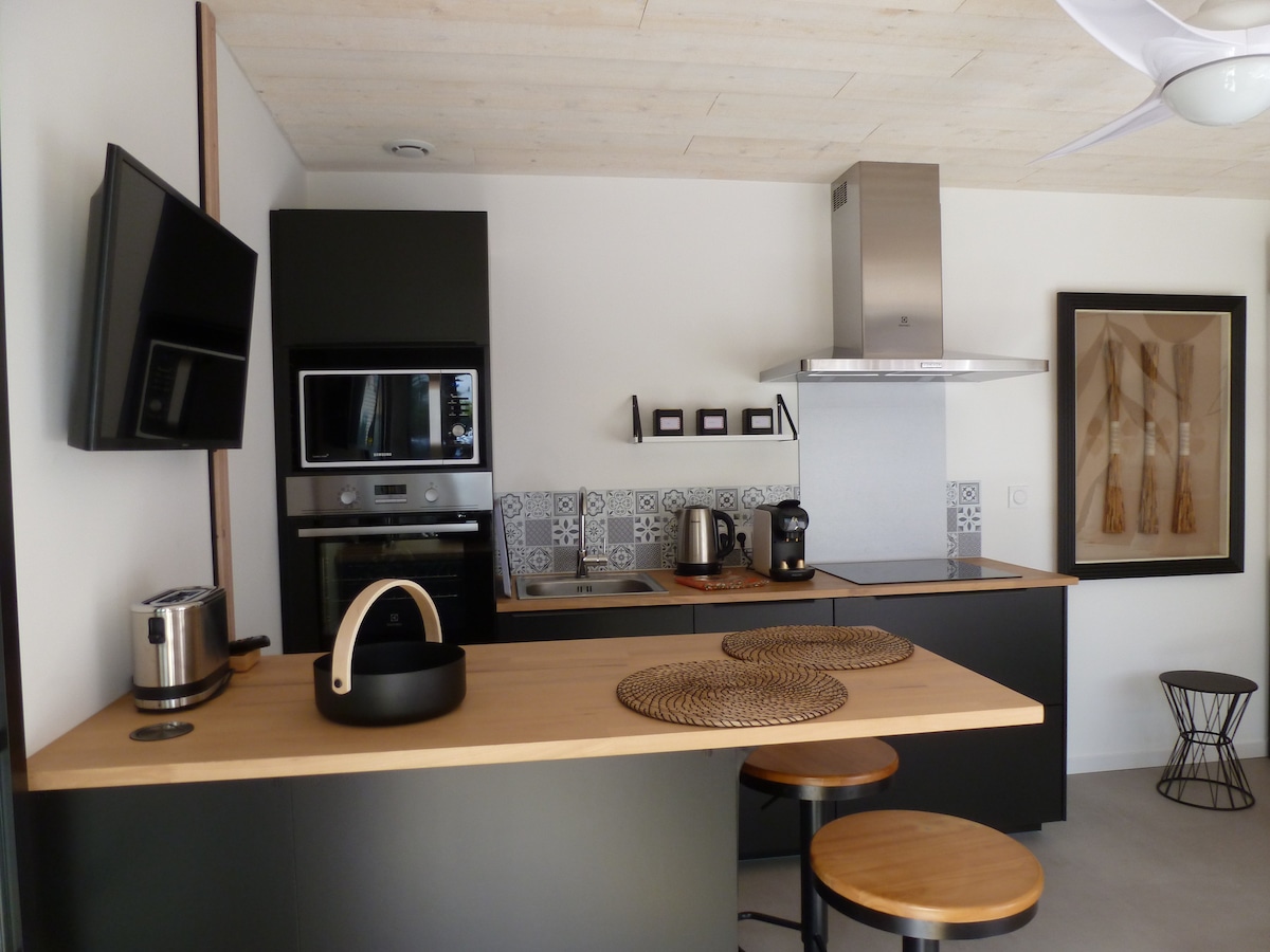 ✨Priuštite sebi opuštajući odmor za dvoje u ovoj modernoj kući, koja se nalazi na selu. Dizajniran za odmor za parove, smještaj objedinjuje mir, udobnost i eleganciju. Svijetla soba ima veliki prozor s neometanim pogledom na prostrano polje, koji vas poziva da se isključite čim se probudite. Za trenutak apsolutnog opuštanja, možete uživati u spa kupki, idealnoj za opuštanje nakon dana provedenog u otkrivanju ili jednostavno uživati u trenutku blagostanja za dvoje.
