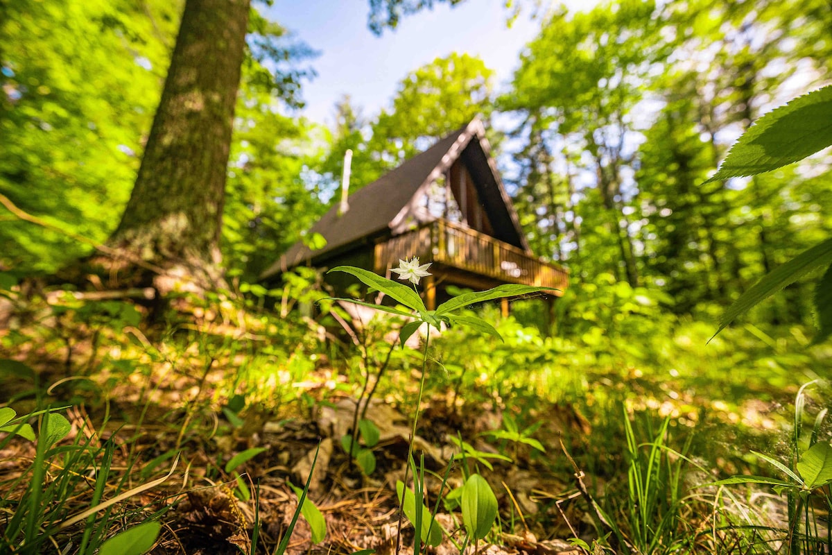 Nine Sides Lodge -3 kreveta/1 kupatilo u klasičnoj planinskoj kući u obliku slova A sa svježim i čistim izmjenama. -10 minuta do planinarenja u Kinu, 15 minuta do planine Whiteface, 30 minuta do jezera Placid. - Planinarenje, hodanje po snijegu, XC skijaške staze, ribolov na potocima i jezercima - sve u susjedstvu! Okviri s kosim krovom su savršeno dizajnirani da ponovo uspostave odnose i stvore osjećaj zajedništva! Drugim riječima, ako ne volite da budete u blizini prijatelja i porodice, držite se hotela. Ali ostanite ovdje i dajte svojim prijateljima FOMO