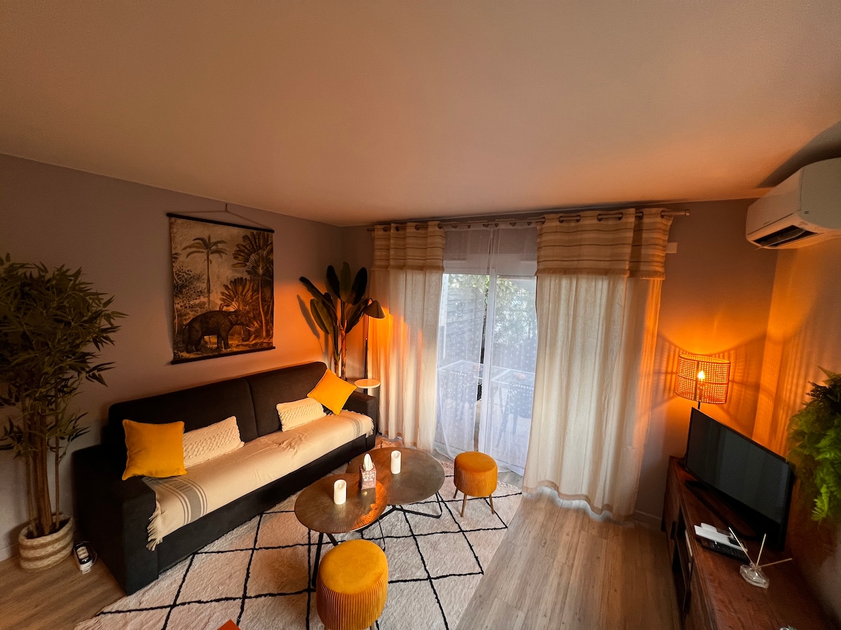 Šarmantan stan od 35 m2 sa 1 spavaćom sobom (krevet 180x200) . Potpuno opremljena američka kuhinja s dnevnim boravkom. Stan je produžen terasom i natkrivenom terasom. Privatni rezervoar za punč (bazen) će vam omogućiti da uživate u nezaboravnim aperitivima u vodi... Nalazi se u zaštićenom kondominijumu „Les Jardins de la Baie Orientale”; do plaže možete doći pješice za 15 minuta ili automobilom za manje od 5 minuta.