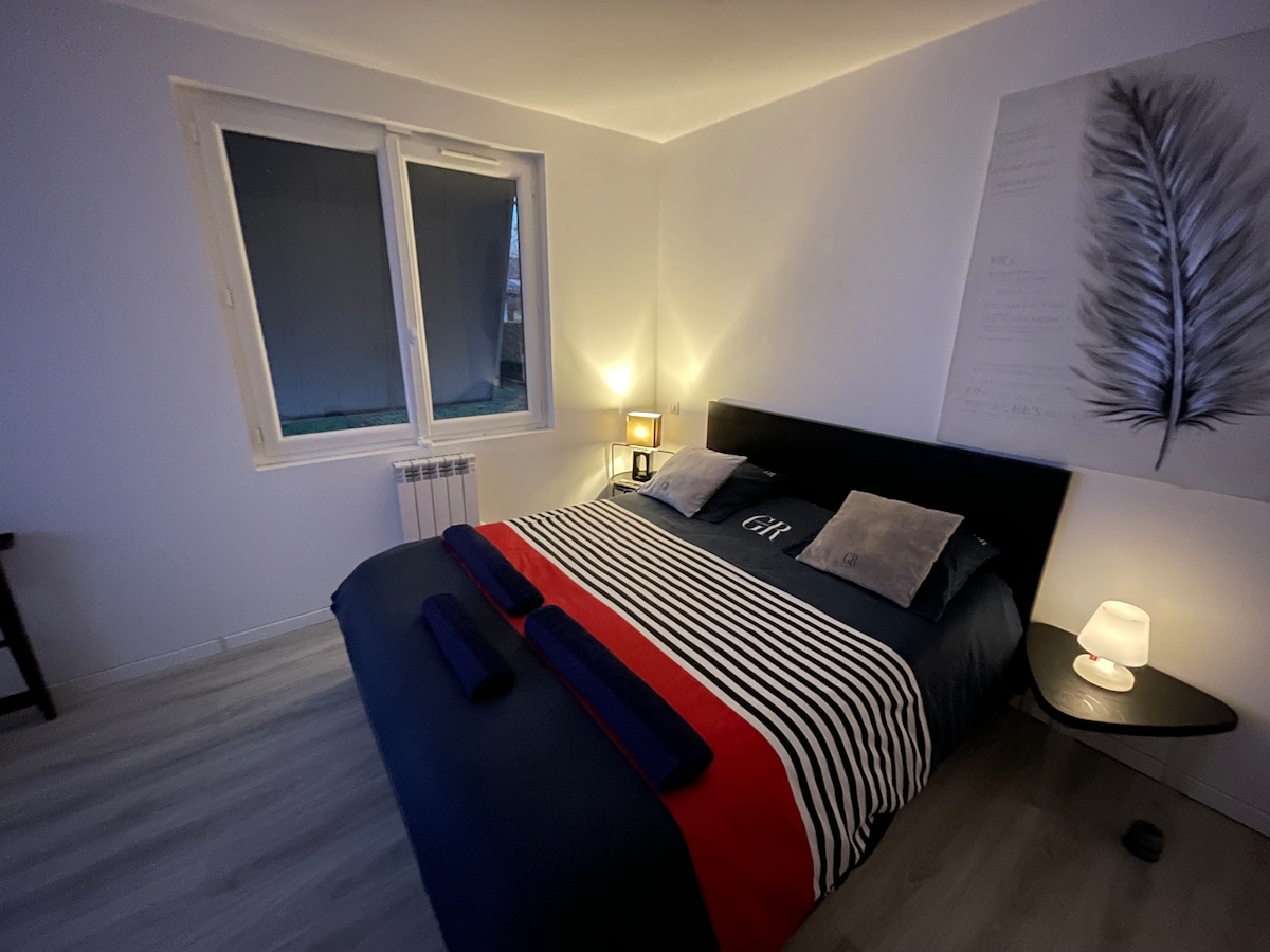 Priuštite sebi romantičan odmor u ovoj novoj staji od 75 m², potpuno renoviranoj i profinjeno uređenoj. Dizajniran za mir i privatnost, ima dvije elegantne spavaće sobe i može da primi do 4 osobe. Uživajte u privatnoj hidromasažnoj kadi za dvoje, dostupnoj tokom cele godine, za bezvremenske trenutke za dvoje. Privatni pristup i parking. 100 m od centra grada i 20 minuta od Bordoa. Kućni ljubimci nijesu dozvoljeni. Opcije na zahtjev: šampanjac i doručak vikendom.