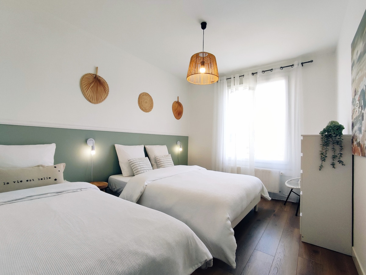Otkrijte naš šarmantni smeštaj pored obala Indrea! Besplatan parking. 7 min. hoda do Monestiera sa barovima i restoranima Nedavno renoviran i lepo uređen, nudi veliki BRAČNI krevet, 2 televizora sa narandžastim televizorom i NETFLIX-OM, NESPRESSO APARAT za kafu (priložene mahune), mašinu za pranje veša (deterdžent za pranje veša) i mašinu za sudove (priložene su mahune). Rezervišite sada za jedinstveni doživljaj u Châteauroux-u. Fiber Wi-Fi. Dozvoljeni kućni ljubimci.