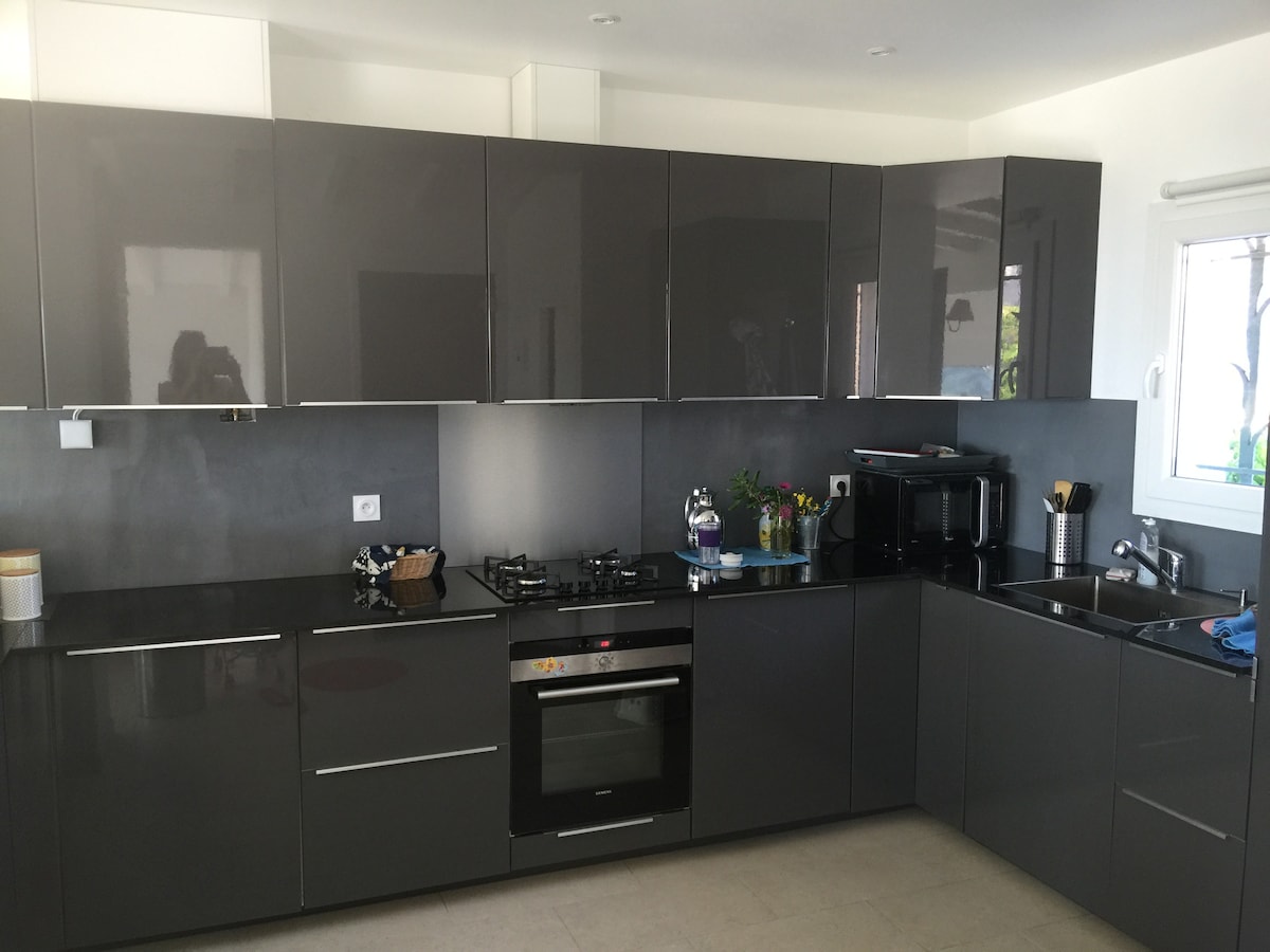 Za izuzetan odmor u renoviranom stanu; jedinstveno okruženje na vrhu privatnog imanja, bez direktnih komšija i sa fantastičnim pogledom na more. 1 Dvokrevetna spavaća soba, kupatilo, dnevni boravak, trpezarija, kuhinja, 2 terase peškiri i posteljina su obezbijeđeni. Veš, mašina za pranje i sušenje veša. U julu i avgustu primamo djecu stariju od 17 godina, a kućni ljubimci nisu dozvoljeni tokom ljeta. Plaža La Nartelle 8 minuta automobilom, centar grada 10 minuta automobilom