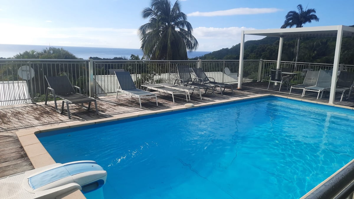 Intiman bazen, panoramski pogledi i okolna priroda: vaše tropsko utočište u Gojavu. Idealna lokacija za istraživanje ostrva, od plaža na ostrvu Grand-Ter do rijeka i vodopada na ostrvu Bas-Ter, prolazeći pored vulkana Sufrier. Uživajte u panoramskoj terasi, klimatizovanim spavaćim sobama, potpuno opremljenoj kuhinji i tuš-kabini u nivou poda, kao i u vrtu. Obezbijeđena je posteljina i rezervoar za vodu (15 dana autonomije) za boravak uz potpuni spokoj. Radujem se što ću vas ugostiti 🌴