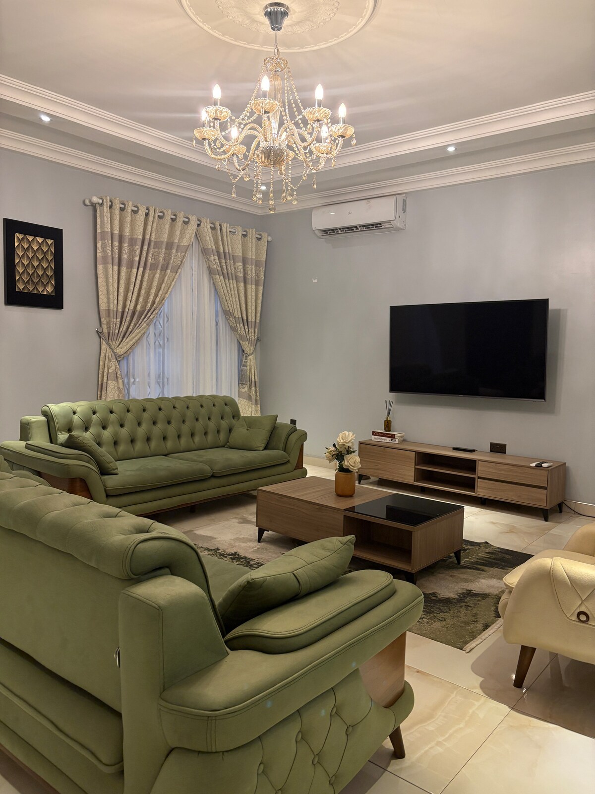 Udoban i bezbjedan smještaj u srcu Teme. Brza Wi-Fi mreža u cijelom smještaju i automatski rezervni generator kako vas nestanci struje ne bi uznemiravali. Spavaće sobe imaju dušeke od memorijske pjene i televizore, a kuhinja je potpuno opremljena. U blizini pijaca, restorana i svega što vam je potrebno za praktičan boravak. • 🚗 5 minuta do autoputa • 🛍️ 15 minuta do tržnog centra Akra • ✈️ 20 minuta do aerodroma