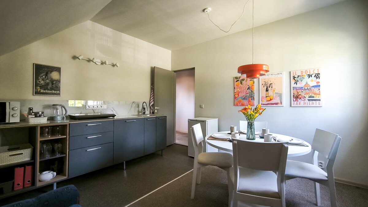 Rudenī šeit ir patīkami silti, un telpu temperatūra tiek uzturēta stabila. Te mājo laika pieskāriens ar koka durvīm, grīdām un logiem. Tieši tas piešķir vietai siltumu un stāstu. Ja jums patīk īstums un dzīva vide, jūs šeit jutīsieties labi. Šī ir vieta, kur jūties gaidīts un pieņemts. Dzīvoklis ar balkonu, dārzu un draudzīgiem sunīšiem pagalmā — piemērots mierīgai atpūtai pāriem, draugiem vai ģimenēm ar bērniem no 7 gadu vecuma. Ir iespēja iznomāt divriteņus 4gab.
