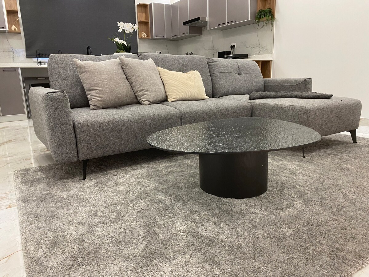 Opustite se u ovom jedinstvenom i mirnom smještaju. Luksuzni stan u blizini glavnih autoputeva i 10 minuta od tržnog centra Seef i gradskog centra. Tri spavaće sobe za šest osoba. Skuvajte nešto u kuhinji pune veličine ili se opustite uz TV od 65inča sa kanalima za strimovanje. Imaćete sopstveni pristup liftom. Domaćin će boraviti u istoj zgradi i brzo će odgovoriti na sve zahtjeve.