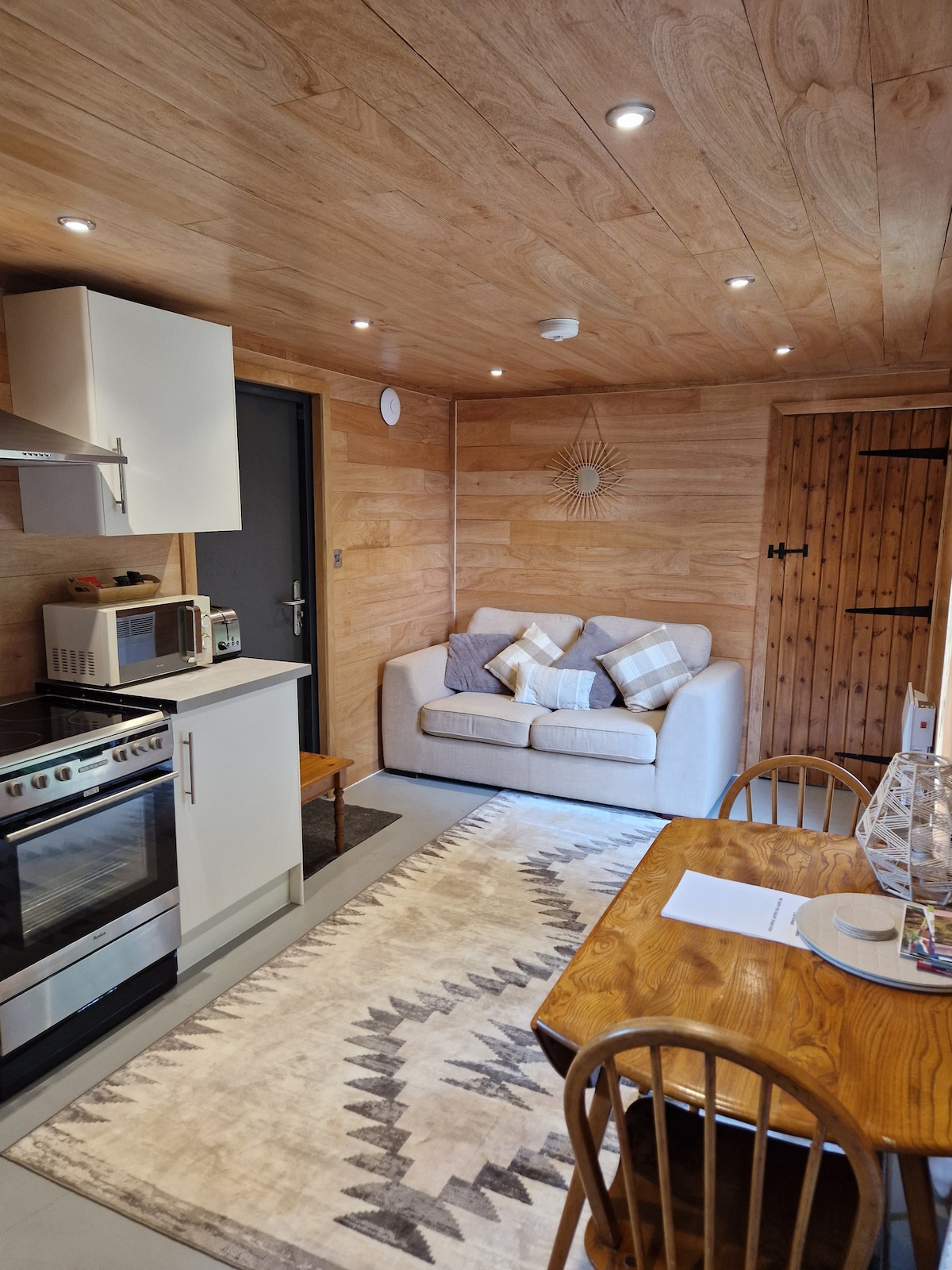 Udobno se smjestite i smjestite u ovaj moderni, ali rustikalni ambar sa otvorenim stambenim prostorom i tradicionalnim detaljima. Staja s jednom spavaćom sobom s otvorenim nadsvođenim plafonima i izloženim francuskim hrastovim gredama, prozorima i vratima. Tradicionalni kamin od cigle sa gorionikom na više vrsta goriva. Dobro opremljena kuhinja sa šporetom, pločom za kuvanje, mikrotalasnom pećnicom i mašinom za pranje/sušenje veša. TV sa velikim ekranom, audiofilski stereo sistem Cyrus i brz Wi-Fi. Smješten u blizini sela Meir Heath, Staffordshire s prekrasnim pogledom na prirodu.