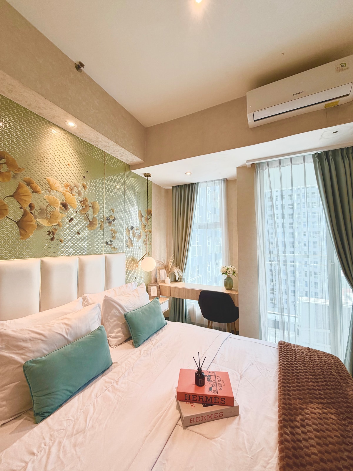 Elegantan studio apartman sa pristupom tržnom centru u Tanglin Supermall Mansion - Surabaja Kompletan namještaj (Spec & Facilities): - Bračni krevet (širine 150-179 cm) 160 x 200 - Kauč na razvlačenje (može se rasklopiti u dušek za jednu osobu) - Aircon - Lemari Baju - Kuhinjski komplet - Panoramski pogled na grad - 2. sprat - Smart TV 32" - Wi-Fi - kulkas i Frezzer - Meja Makan Javni objekti : - Bazen (1. sprat) - Teretana (prizemlje)(GF) - Vešeraj (prizemlje)(GF) - Direktan pristup tržnom centru Pakuvon (prizemlje)(GF)