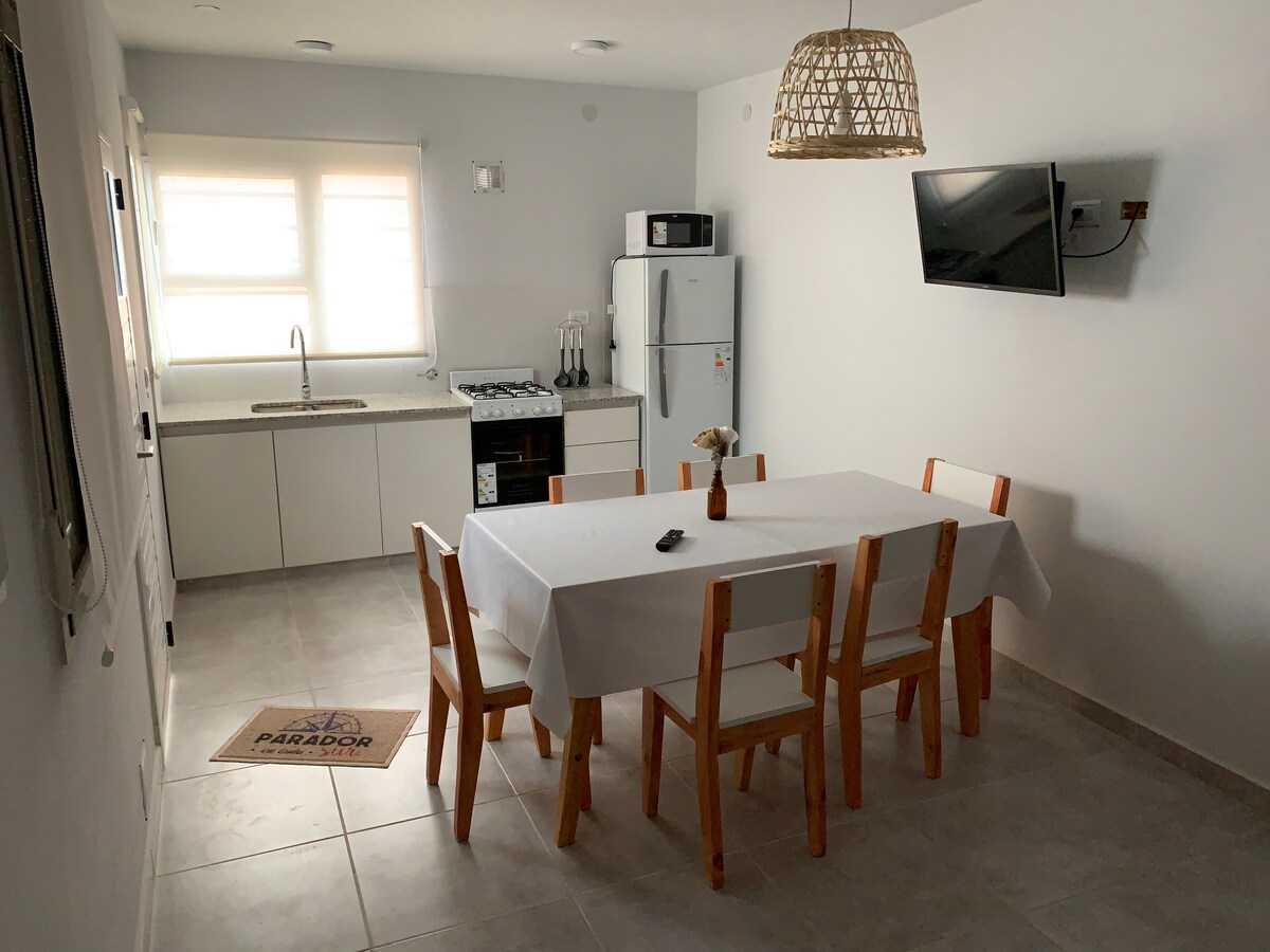 Ovaj mirni apartman bez električne energije okružen je prirodom i nalazi se na samo 500 m od plaže Los Coloradas i na nekoliko minuta vožnje od centra grada Las Grutas. Savršeno mjesto za bijeg od svakodnevnice. Opremljen je mnoštvom mesta za opuštanje: balkon, terasa na krovu sa prelepim pogledom ili se možete rashladiti pored bazena. Postoji staza koja vodi do plaže, a udaljena je samo 4 minuta hoda. Noćno nebo oduzima dah.