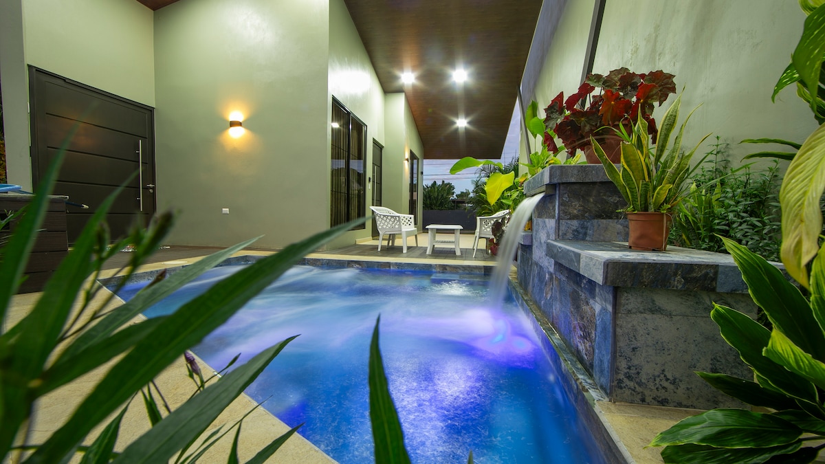 Enjoy a unique experience at this villa surrounded by nature. Perfect for disconnecting, it offers privacy, security, and a relaxing atmosphere. The private hot tub allows you to unwind while taking in the beautiful views. Explore the private forest and enjoy peaceful hiking in a tranquil environment, breathing in fresh air. This retreat reconnects you with the essentials, providing the ideal place to enjoy calm and natural beauty! We are 15 minutes by car from La Fortuna.